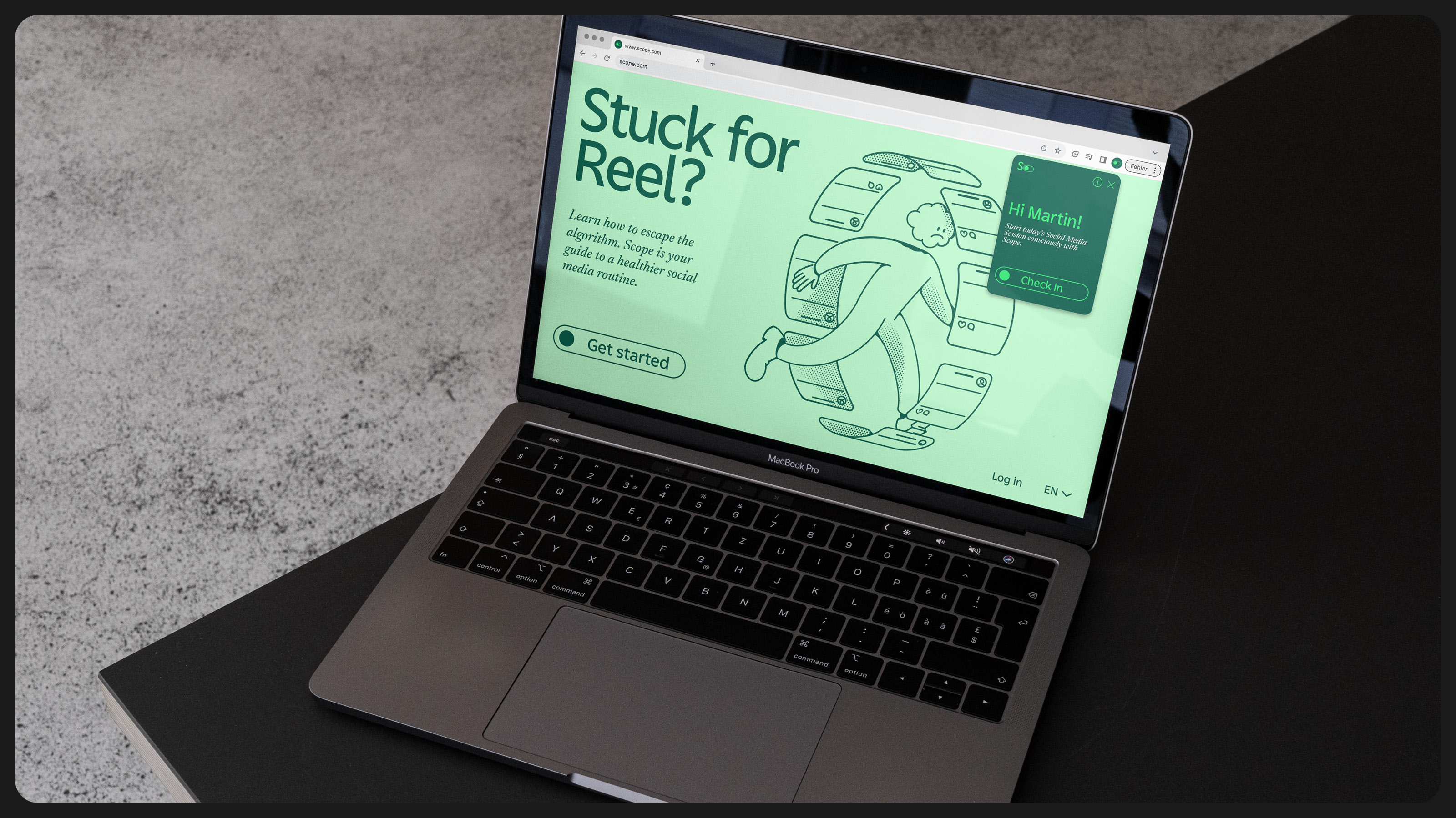 The concept for Scope was initially developed as an academic thesis project at the University of Applied Arts Vienna, combining both written research and practical design implementation. This approach enabled a deep exploration of the psychological impact of social media, supported by expert consultations across the mental health and medical fields.
