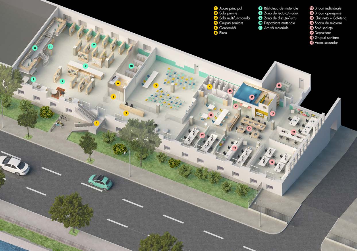 2. Design for Creativity & Well-being. The space is modular and dynamic, fostering interaction and multidisciplinary exchanges. It includes open workspaces, fabrication labs, event areas, and green relaxation zones, ensuring an optimal creative environment.