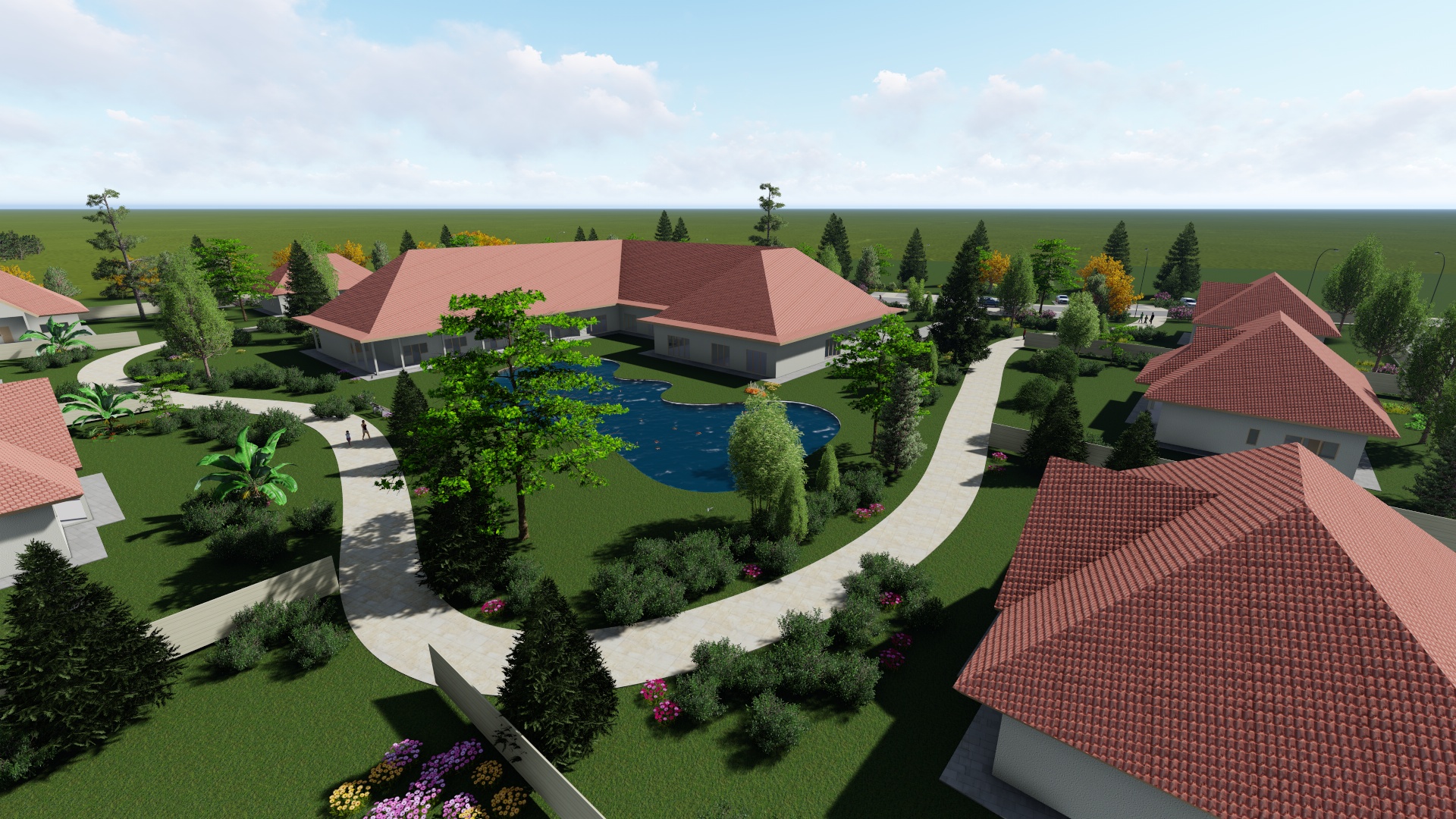 Based on the latest statistics, Europe's demographic indicators show an ageing structure. Most elderly people, especially women, live alone in their households. Social care facilities are overcrowded and people choose institutional care only under pressure, because most of them do not meet the needs of modern people. Liget Park, on the other hand, offers an alternative community housing solution where people are happy to move in. Pensioners who are still active and able to take care of themselves would also like to move in here. We design comfortable, handicap-accessible, human-scale apartments, where family members are happy to visit, because the environment provides an attractive opportunity for families to meet. In Europe, there is a tendency for people who have reached retirement age to move from the west to the eastern regions. For them, Hungary is an excellent destination with its low prices and wonderful environment. Unfortunately, people moving away can often feel isolated. The Liget Park Project is also trying to change this. As the population of Jánoshida could also benefit from the advantages brought by future residents, so the inhabitants of the settlement regard the elderly arriving to us as an asset. Instead of isolated, crowded, reserved nursing homes, we have developed an open, livable concept based on community values. People living here can actively spend their days as appreciated members of a community, so the number of their precious years of life is expected to increase. The resulting housing model will put less strain on the social care system, as care for the elderly will only be required as a last resort. A third innovative approach is that we plan a separate residential unit in the main building so that adults in need of care can spend shorter periods in Liget Park, under the supervision of professionals, so the family members caring them can also be freed from the burden of care for 1-2 weeks.