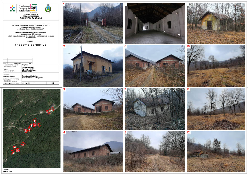 The Sangano project breathes new life into a 52-hectare forest, formerly home to a Gunpowder Magazine and its 40 barracks. This ambitious redevelopment will create several spaces, including a forest library, a permanent market showcasing local products, a forest school, sports and sensory trails, a refreshment area, and an innovation hub for green and digital start-ups and experimental academic activities. Addressing the area's hydrogeological instability is a priority, with mitigation measures planned, such as a self-filtering, partially swimmable lake. Currently, the project has secured funding from foundations for a complete preliminary design and from the Piedmont Region for the rehabilitation of the external perimeter (destined to become a sports and tourist circuit), the construction of an open-air amphitheater for schools and associations, and the design of the hydrogeological interventions. All facilities will adhere to DNSH criteria and be powered by renewable energy sources. Photovoltaic systems will also contribute to the local Renewable Energy Community, already established by the Municipality. Following site stabilization, private investment will be sought for the rehabilitation of individual plots/barracks through project financing and crowdfunding. The project has benefited from targeted engagement with local and major national associations: extensive participation paths were activated both in the preliminary and executive design phases. Today the executive design of the external perimeter has been activated, in search of a mix of beauty, innovation and recovery of the historical memory of the place by the Community.
