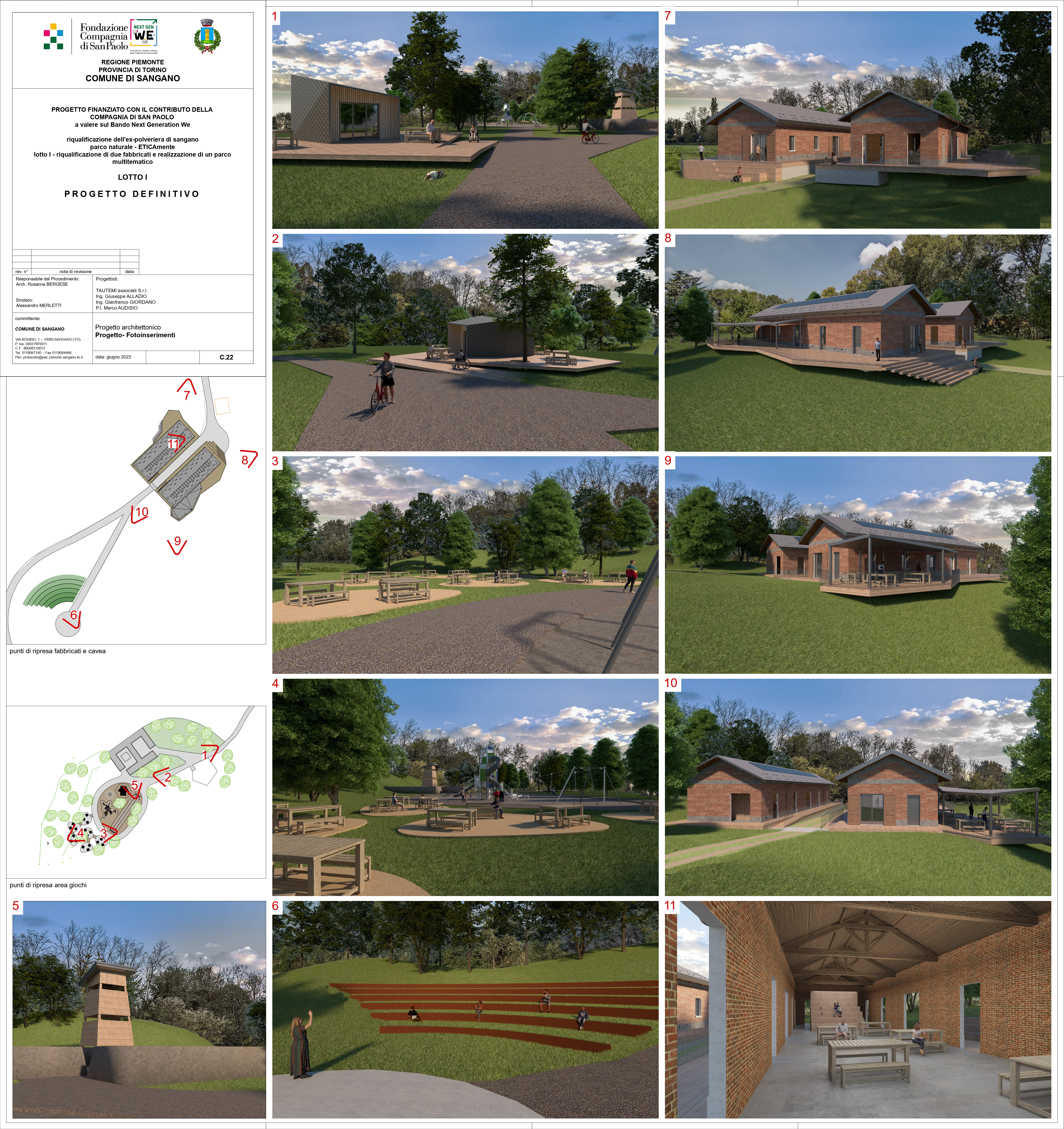 This participatory approach will continue to guide all administrative actions. The benefits of this project will extend beyond the residents of Sangano, encompassing the entire valley and the metropolitan city of Turin. The park will be accessible to all, both day and night, providing a space for outdoor gatherings and offering various amenities, including indoor facilities that will serve as community centers, meeting spaces, refreshment areas, and hubs for startups and university activities.