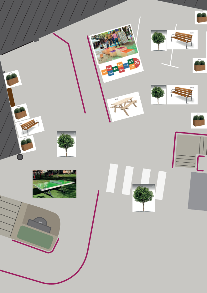 By improving the urban space and incorporating more green spaces as requested by residents, the design creates an ecosystem that coexists with the community. Adding plants offers a cooler atmosphere and shade, while also improving air quality and enhancing biodiversity. Additionally, closing the space to parking reduces noise and air pollution, contributing to a healthier urban environment.