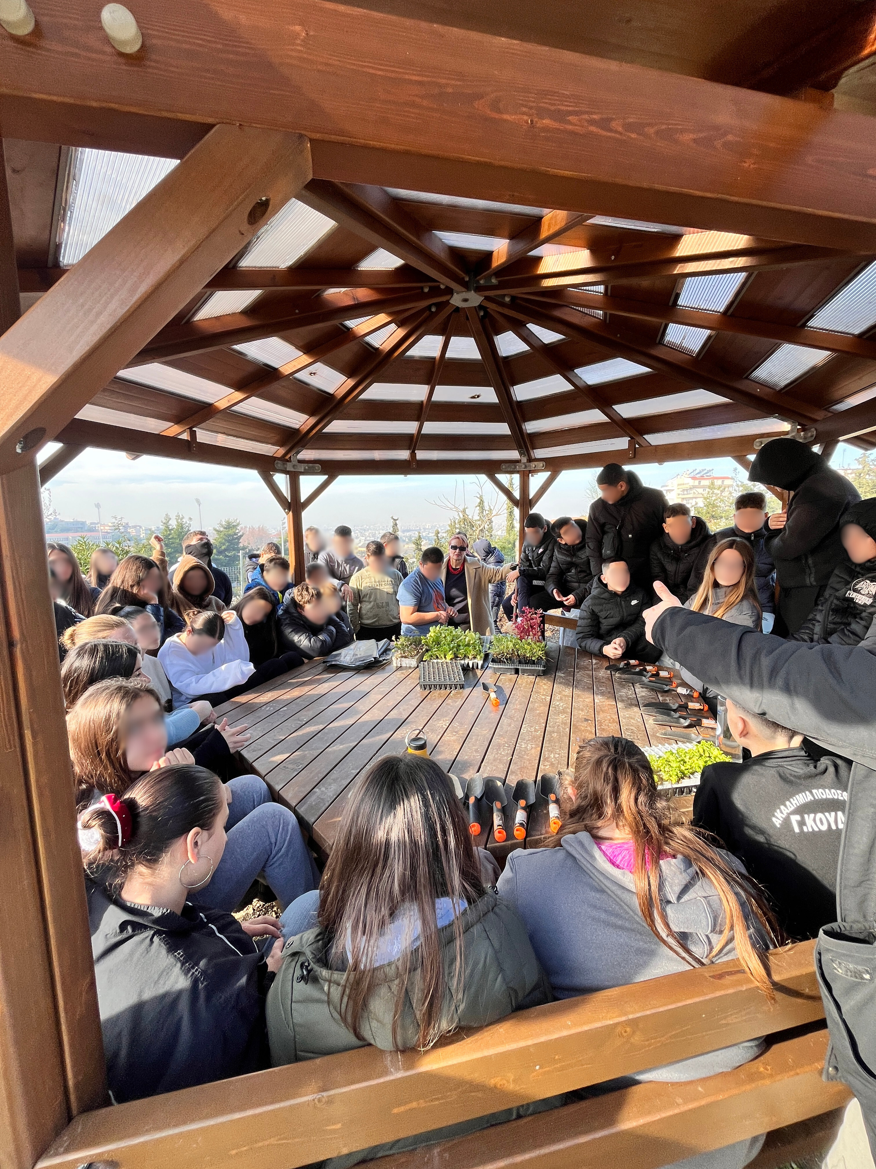 The project’s innovation lies in pioneering a scalable methodology for urban rewilding and fostering reconnection with nature for and with urban communities by combining interdisciplinary knowledge with low-impact, regenerative land-use strategies. This approach was realized through Greece’s first-ever urban food forest—a groundbreaking Public-Commons Partnership (PCP) orchestrated by Mamagea, which empowers citizens and local communities to collaborate with public authorities. By partnering with the local municipality and the 5th Neapolis High School, the strategic location of the food forest ensures long-term engagement from a broad spectrum of publics—unlike many participatory projects in Greece that typically involve disproportionately more ‘privileged’ groups. In a country where participatory processes and transdisciplinary, intergenerational, and multi-stakeholder collaborations are underdeveloped, the project’s innovative character is evident in its holistic conception, design, and implementation. By breaking down silos among citizens, decision-makers, and experts, it provides a replicable model for transforming urban spaces into inclusive, participatory hubs that address both environmental and social challenges. As an extension of this innovation we can also trace the use of the Neapolis Food Forest as a hub for climate change education, bridging the gap between schools and their extended neighborhoods. This initiative connects school communities with local residents and public urban spaces through the co-creation of a Nature-Based Solution, extending the confined and heavily cemented schoolyards of Greek state schools into vibrant spaces for environmental learning in their neighbourhoods. Consequently, the project not only reconnects urban communities with nature but also integrates continuous environmental education into the formal curriculum, creating a lasting legacy for future generations.