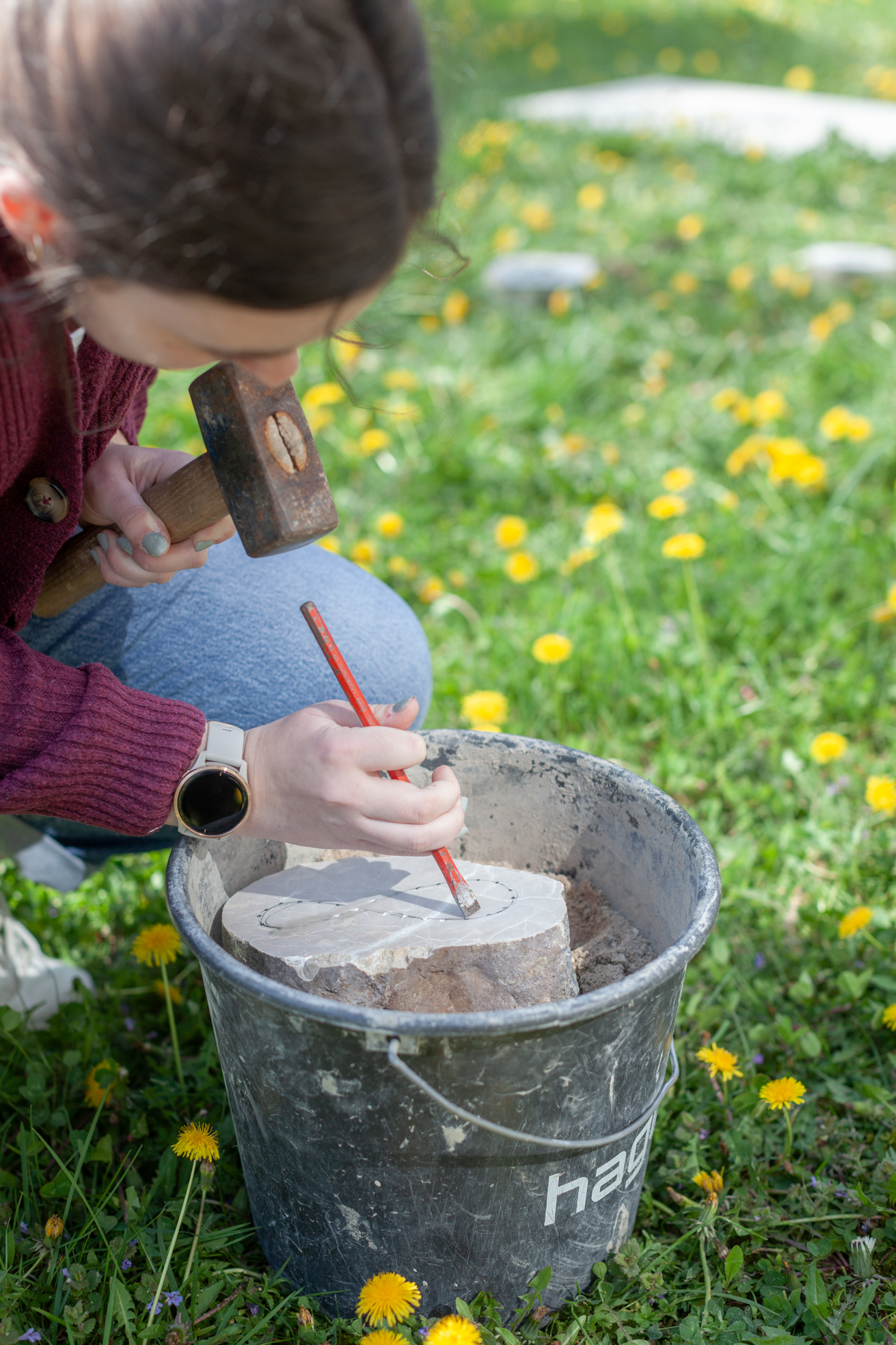 Those 40 students who were given the opportunity to participate in the planning and construction of the Garden of Moving Time will hold this experience for long. Taking part in a long-term and experimental project with international artists and a number of recognised experts as part of their school education has a special quality and depth. Learning that the human body has been understood as the basis for measuring the space and dimensioning the garden during this embodied and sensitive planning process is a very valuable experience in itself. The students and teachers were actively involved in numerous participatory modules during workshops and the construction phases of the garden. From digging and planting a raised bed for test purposes, sensorily exploring the herbal flora in the region, designing communication elements to the construction of a horizontal sundial under the guidance of a stonemason. The students were introduced to various design strategies and craft techniques, many of which are ecological gardening methods that do not use any plastic material or artificial fertilisers and rely on regional products such as sheep's wool and horse dung. The students will probably also never forget the first picnic on the school grounds by using a solar grill, completely without fossil fuels or electricity.