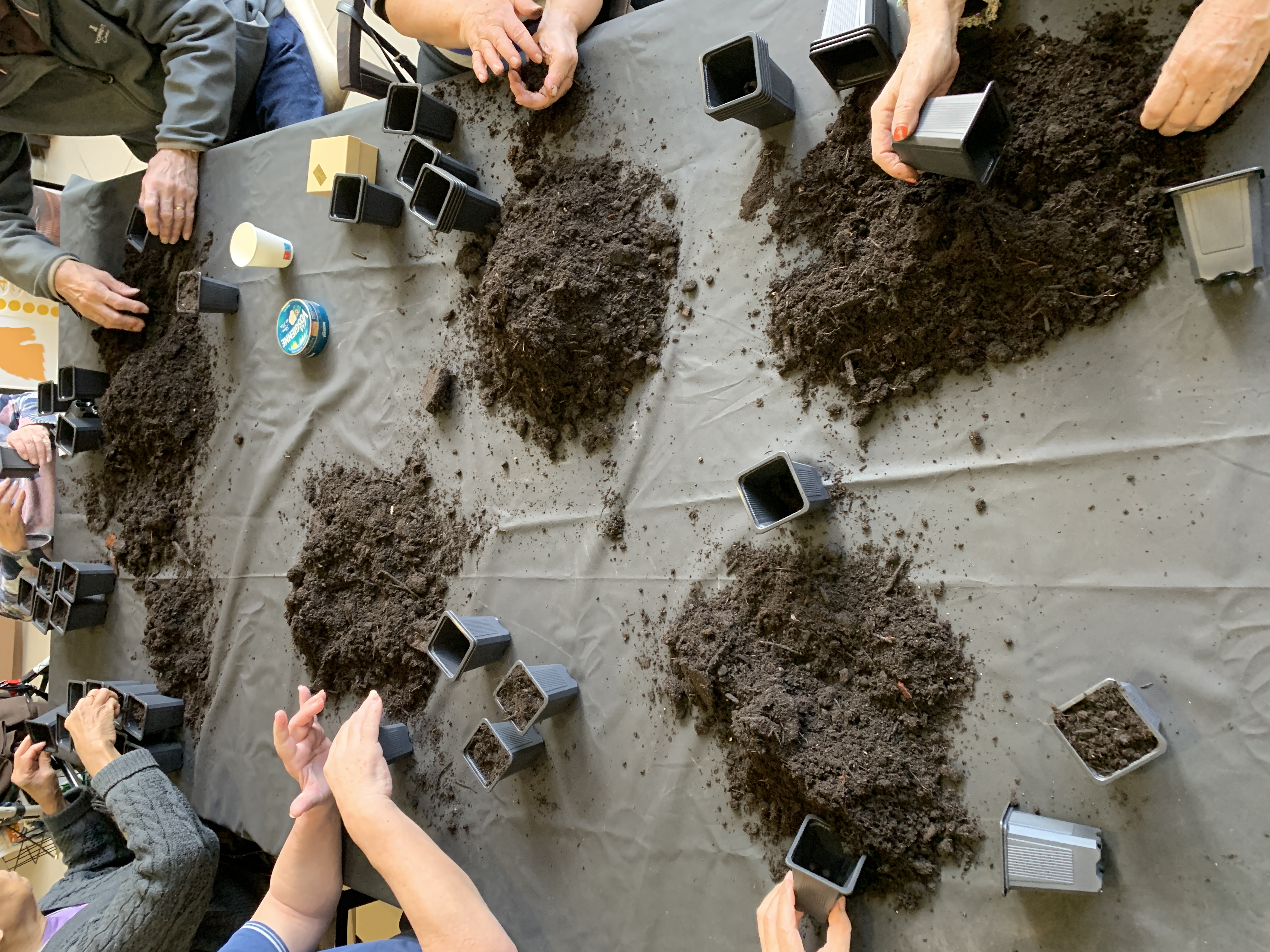 Instead of purchasing Tons of soil, we partnered with the City of Paris garden unit to gather leaves, grass clippings and woodchips from the local parks, transporting everything back and forth every day on foot to the nursing home. This organic matter was then mixed with food scraps from the nursing home kitchen and left to ferment over the winter in order to create a rich, compost soil for the spring planting.