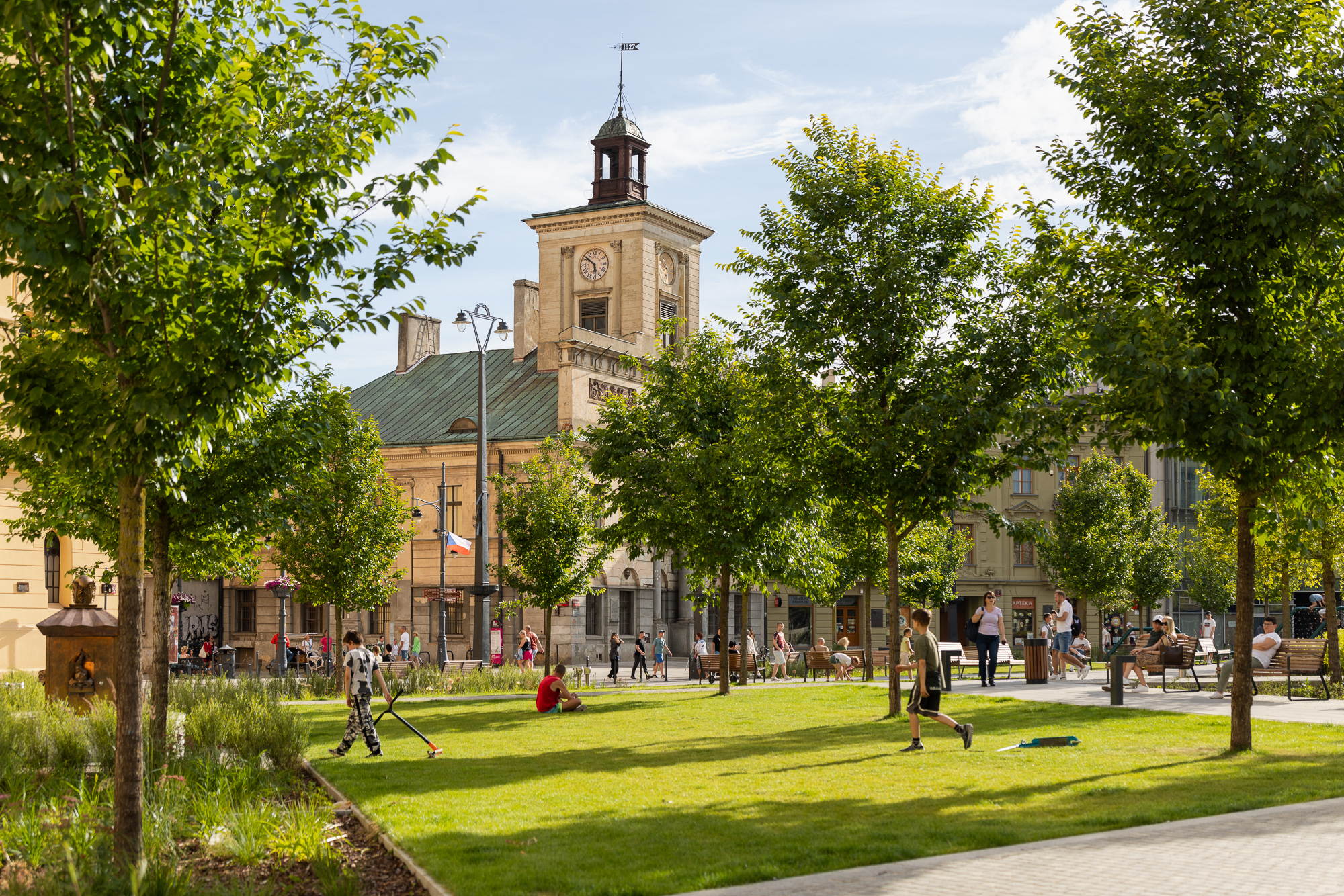 The initial criticism of the bold greening of the square—unprecedented on a national scale despite a significant shift in the shaping of public spaces—subsided when the completed project became one of the residents' favorite places, shifting the focal point of the city center.