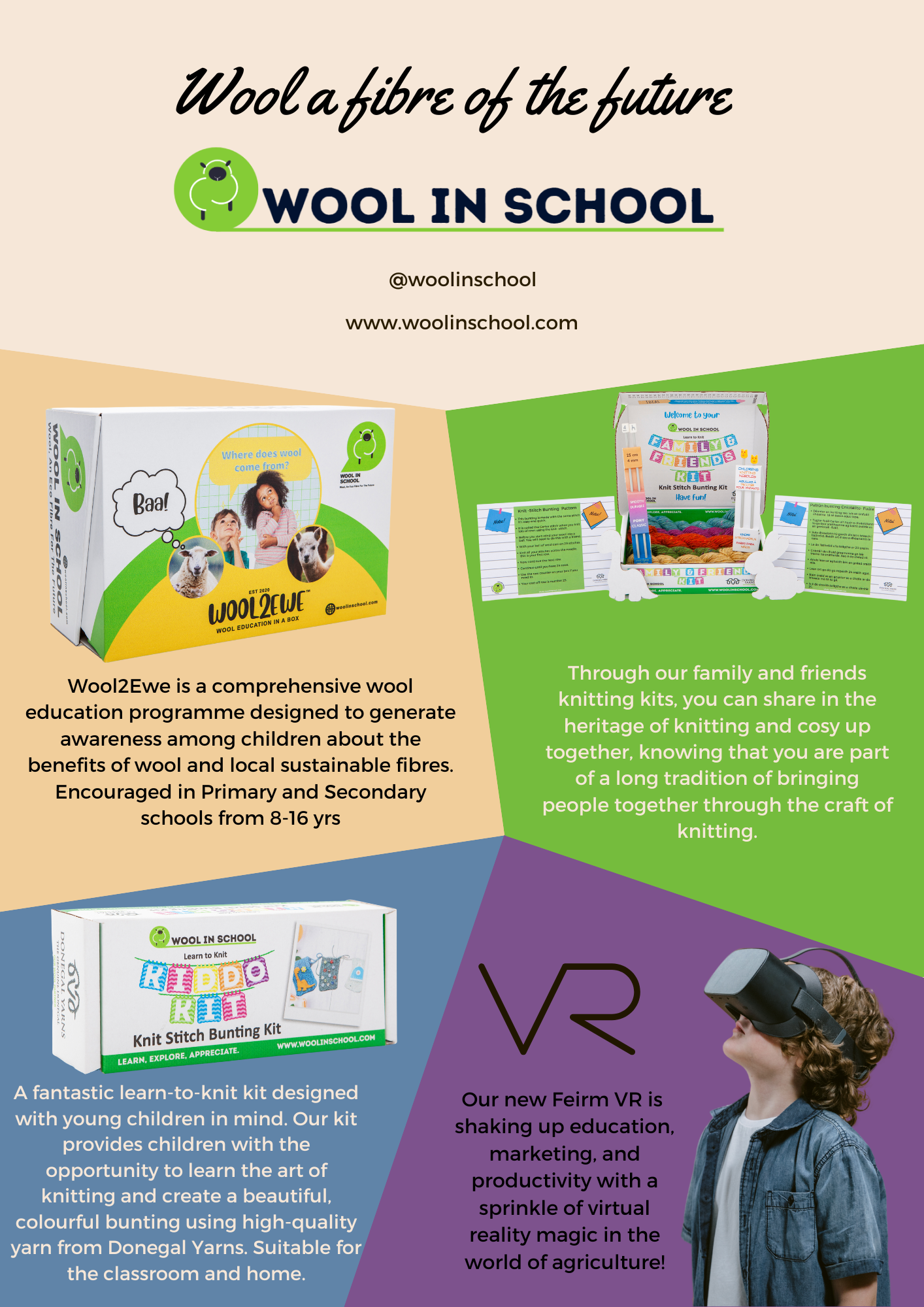 Wool in School Through our programme Wool2Ewe we have reached over 30000 children introducing them to wool and sustainability and why wool has it's place in the conversation of climate change.