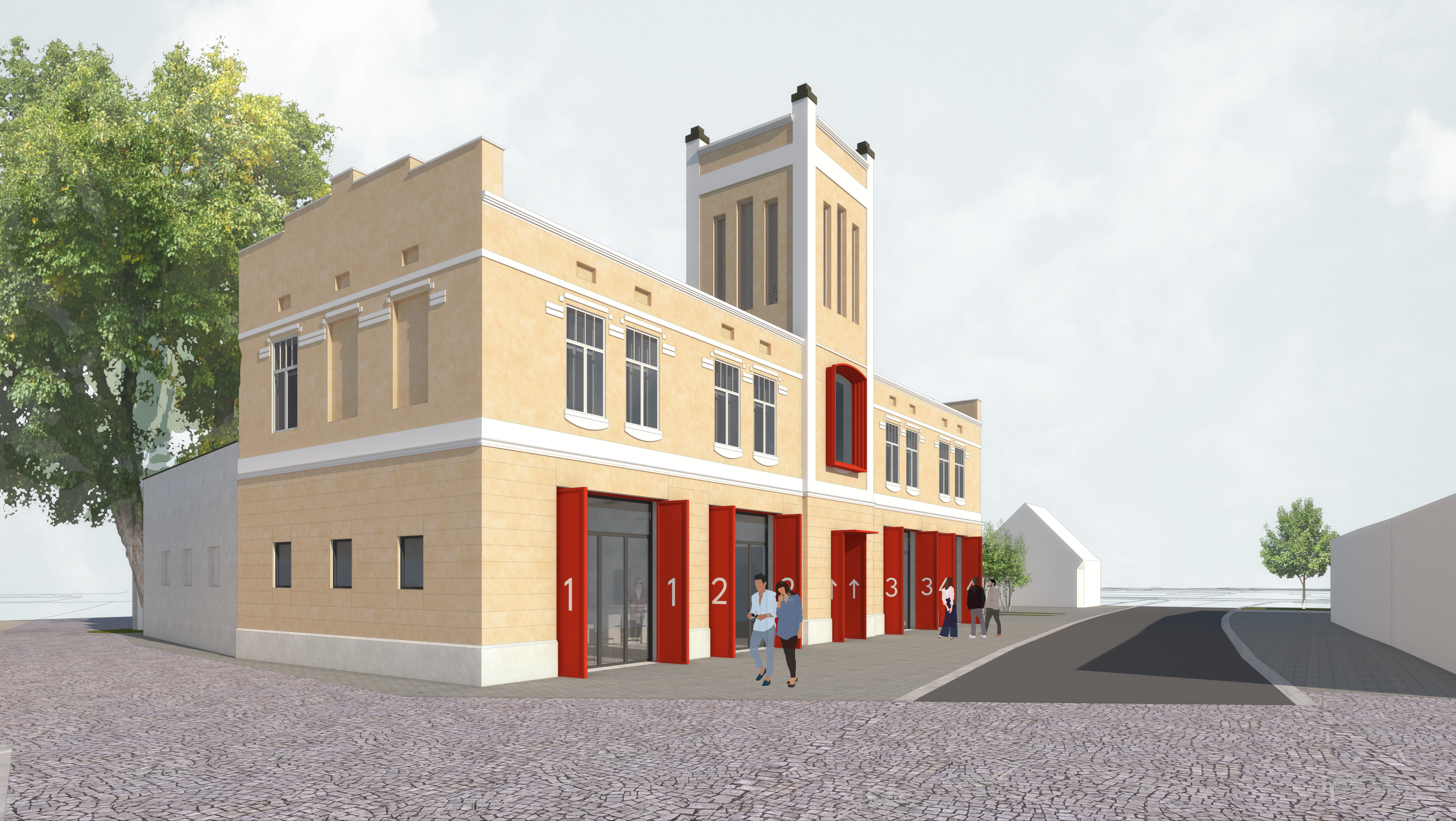 • Adaptive reuse of a historic building: By revitalizing the former fire station, the project minimizes the need for new construction, preserving the building’s historical value while giving it a new, functional life. This adaptive reuse strategy reduces construction waste and energy consumption associated with new buildings, making the project a sustainable choice in preserving local heritage.