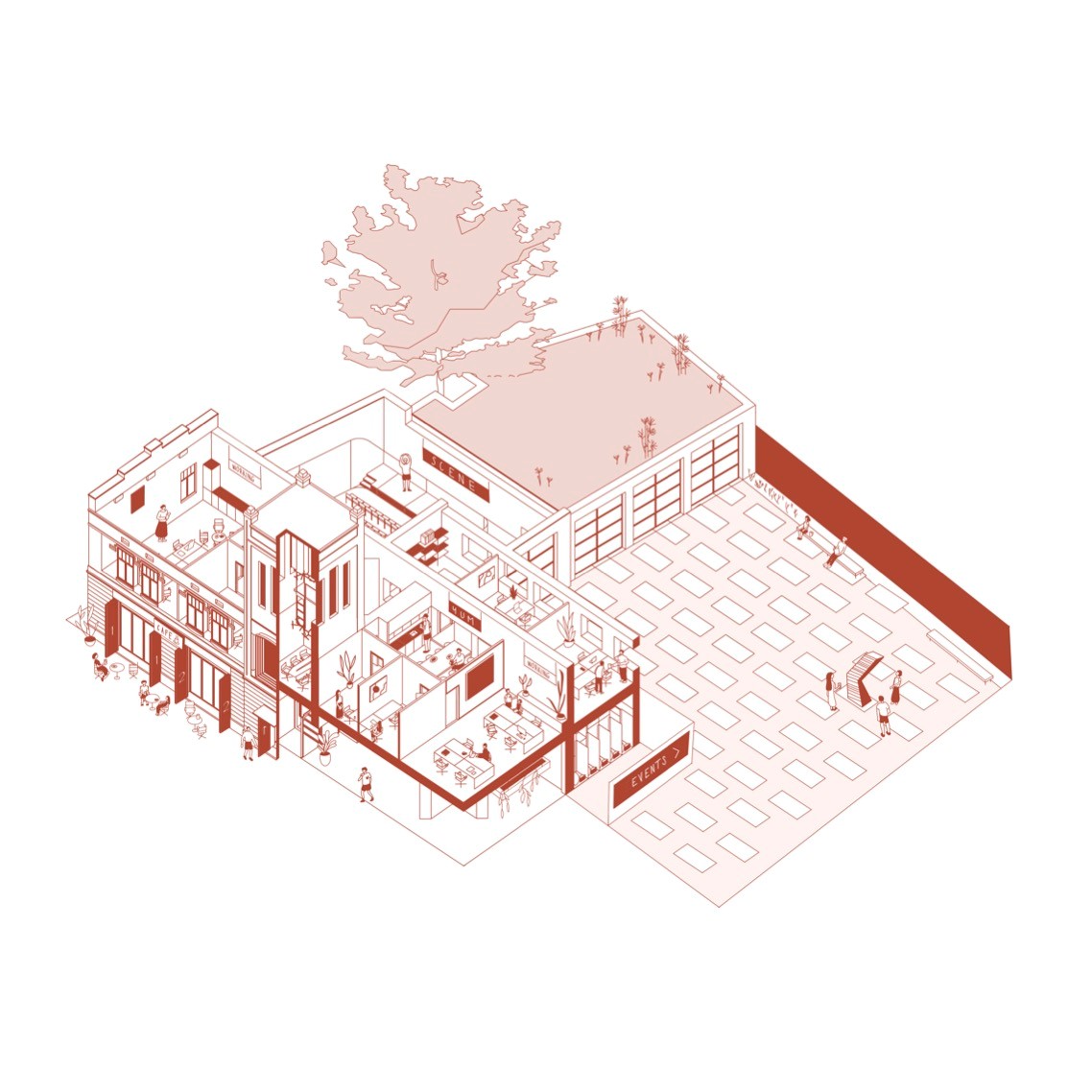 The mission is to develop a sustainable hub for cultural events and creative industries. By collaborating with the architectural studio KOGAA we have created a feasibility study, which focuses on: