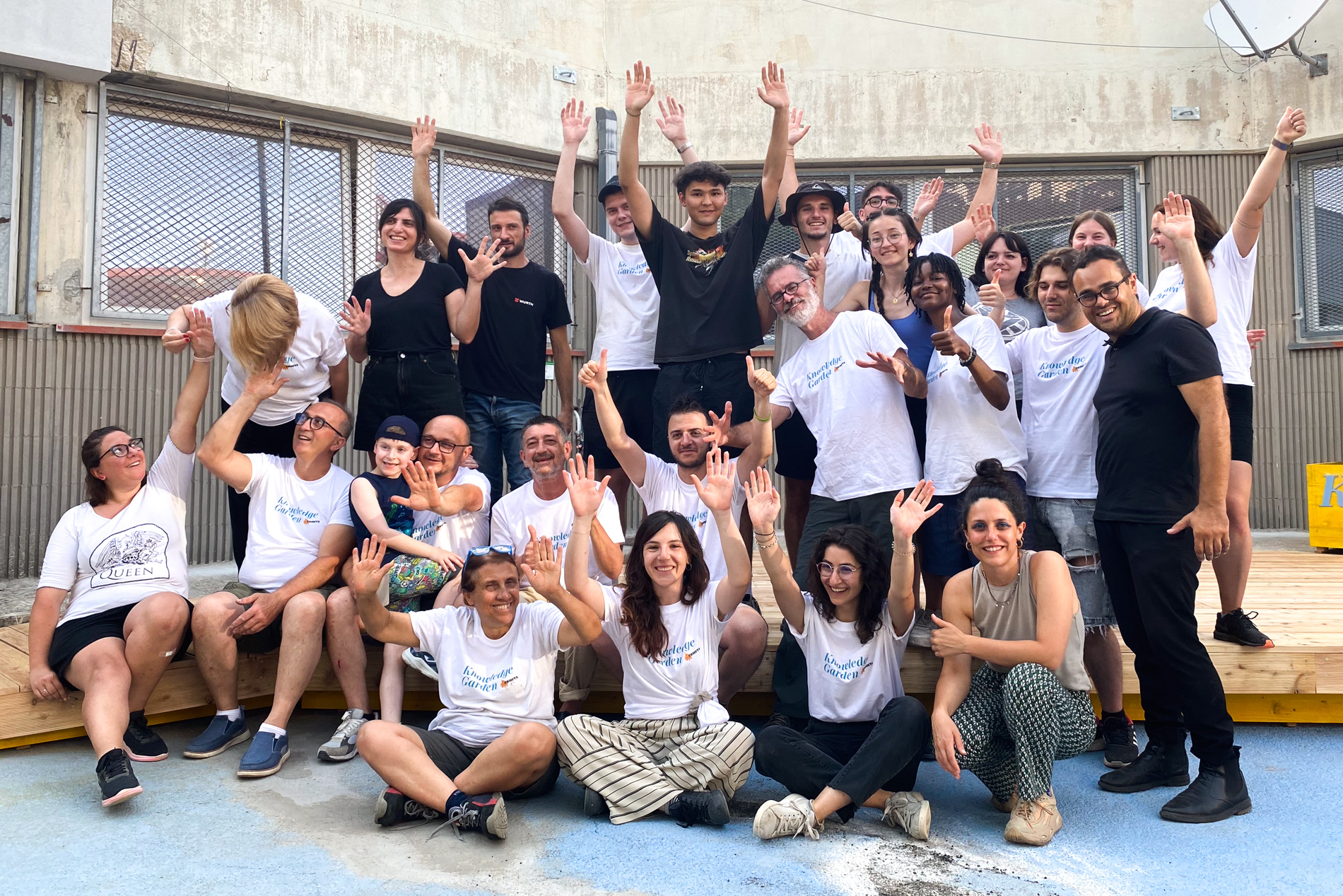 A collective self-building process without the need for prior training. Everybody has been enabled to learn how to deal with professional tools, construction techniques, and materials. After the first days of practice, all the participants were almost autonomous.