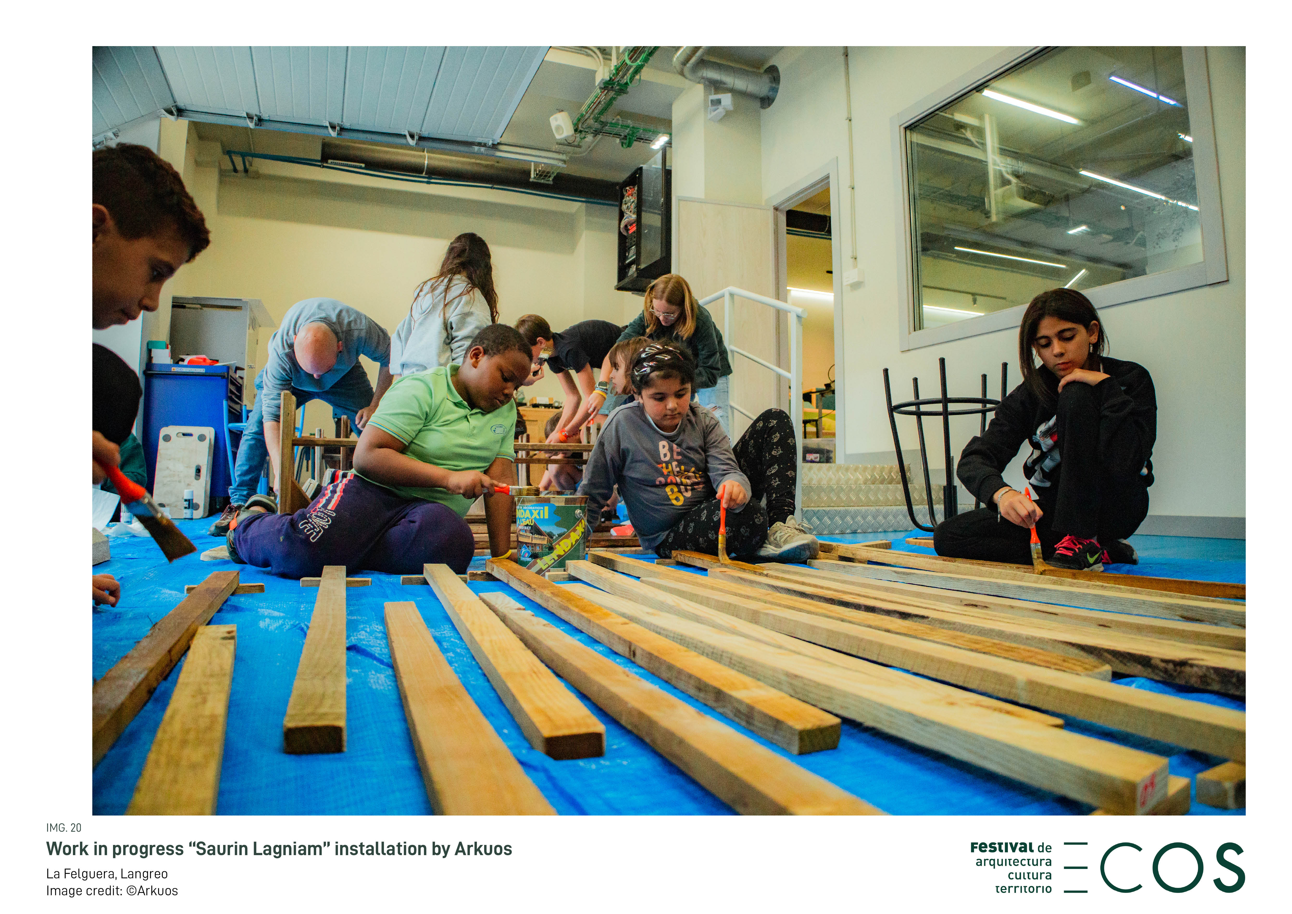 The festival’s conceptual strategy identified two primary target groups: local communities and youth. Several initiatives were designed to engage them, the most significant being the involvement of young participants from Arkuos, a local socio-educational space. They were given responsibility for the installations located in Pozo Fondón, which resulted in a project fully conceived and built by over 60 contributors aged eight to their early twenties.