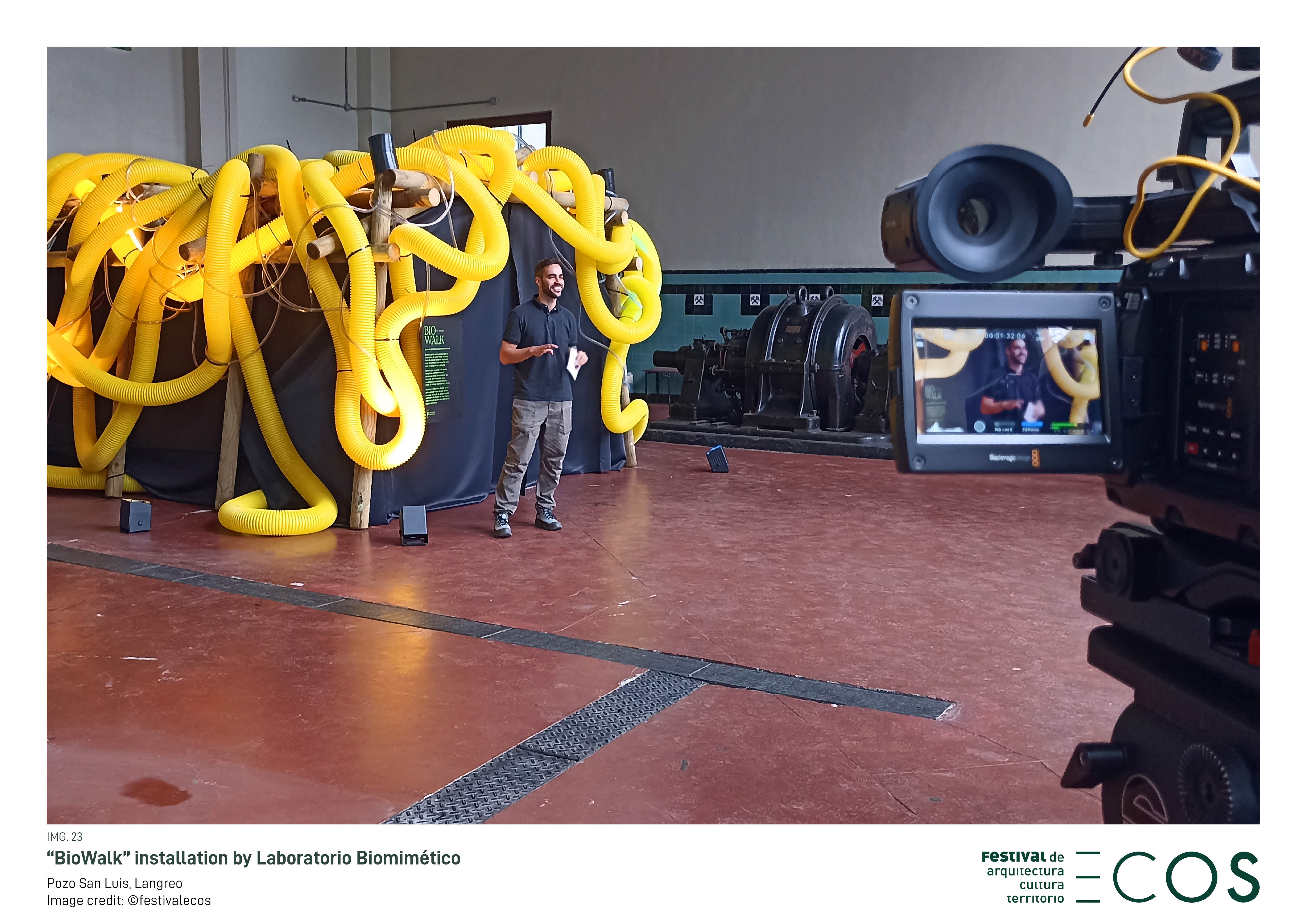 Another key initiative was the collaboration of Fundación Laboral Santa Bárbara, a local non-profit organization supporting individuals with disabilities, in the installation at Pozo Sotón. Participants created colorful bags for the pavilion, demonstrating how inclusion can be realized through co-creation and collaborative design.