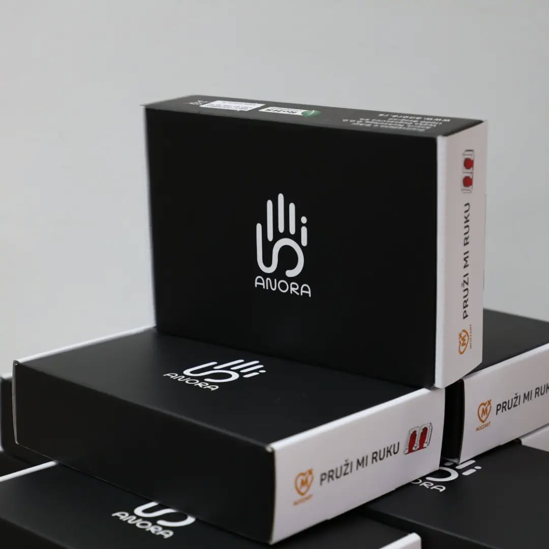 Anora - Smart Glove for the Blind is electronic device that helps blind do everyday much easier. With more than 10 functions it helps blind in orientation with vibration, in indoor and outdoor space, it recognises and tells colours and banknotes, vibrates and talks back for light intensity, tells time and date, and if user get lost, it has panic button to press and the device sends its location to family member, friend or professional assistant.