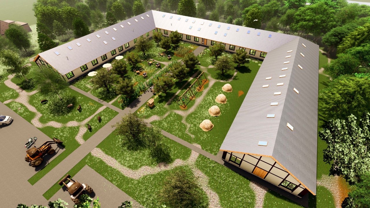 The most relevant difference between our project and others is that it is the largest ecological building made of industrial hemp for IDPs in Ukraine. We have used innovative eco-friendly building materials based on industrial hemp and lime without the use of cement and other toxic additives. The newest approach also includes a combination of education, rehabilitation, and employment for vulnerable people directly on the territory of the complex. The 16-hectare complex includes lakes for fishing and swimming, a farm (sheep, goats, pigs, chickens), recreation areas (gazebos, hammocks, barbecue areas, a trampoline, and a sports ground).
