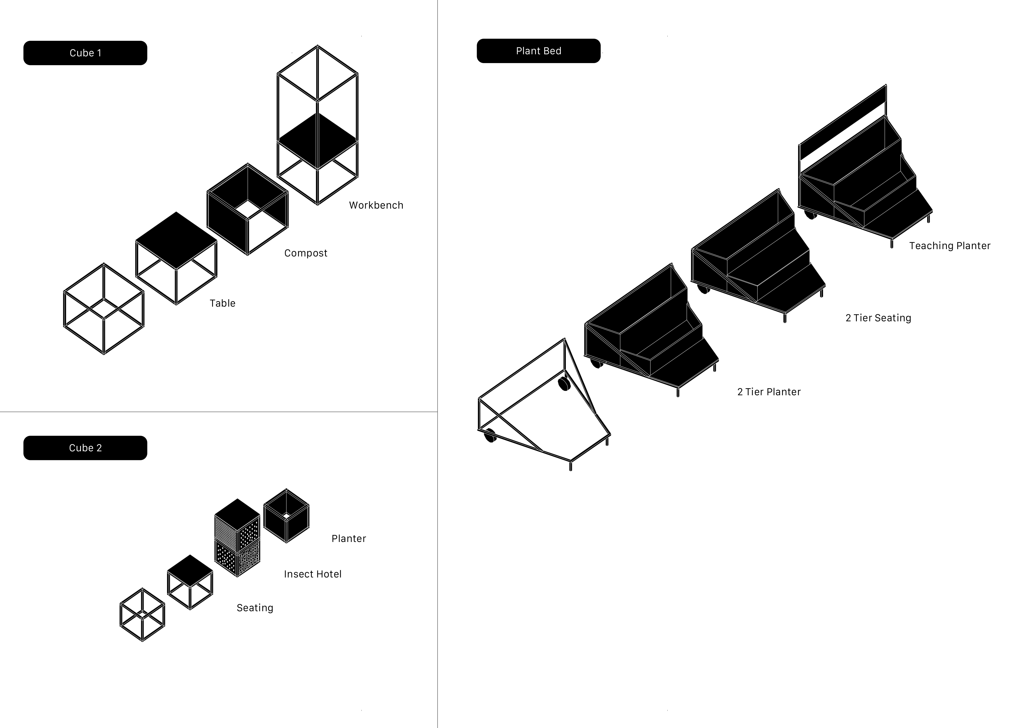 Central to the project is the aesthetic of collective making, where handcrafted, low-tech structures—including modular seating, shading devices, raised planters, and interactive play elements—are co-built through participatory workshops. This process aligns with Sennett’s vision of craft as a social act, where the shared act of building deepens connections between individuals and their environment. It also embodies "building as a social ritual", reinforcing how hands-on, collaborative construction fosters care and long-term stewardship. The visible traces of human labor—hand-finished wood, woven shading canopies, and earth-based textures—give the space an authentic, tactile quality, emphasizing a deep relationship between makers and their surroundings.