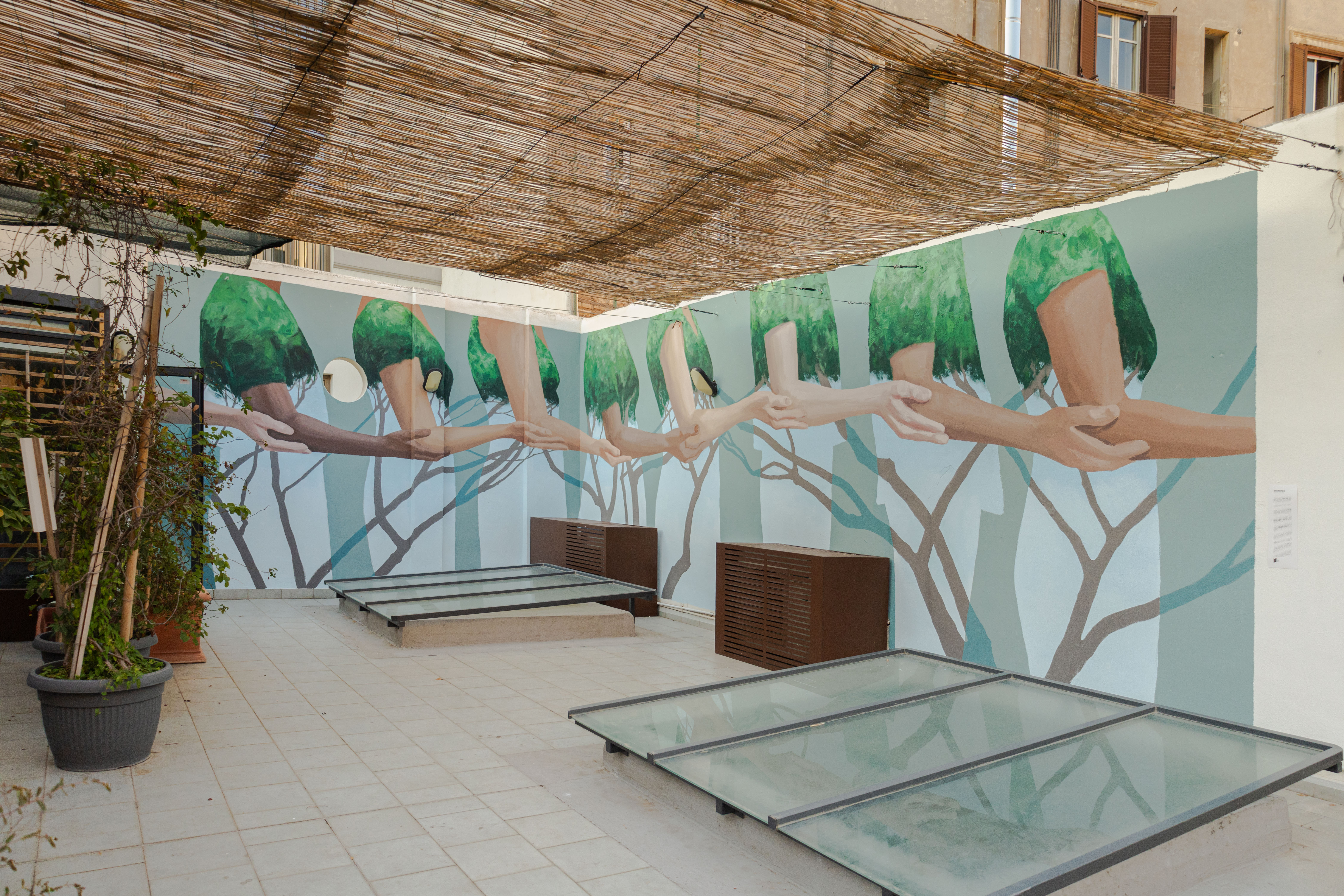 Among the actions implemented in pursuit of these goals are the public artworks created with the artists Alleg, Eloise Gillow and Giulio Vesprini, based on instances identified in participatory co-design workshops. Themes include the model of nature as collective intelligence, cooperation among individuals, and native species as a model for constructing a plural identity. Built on the walkable surface of a pedestrian bridge over the Tevere River, Vesprini's Upside Down portrays the river environment below by giving it back to a community that has almost forgotten it.