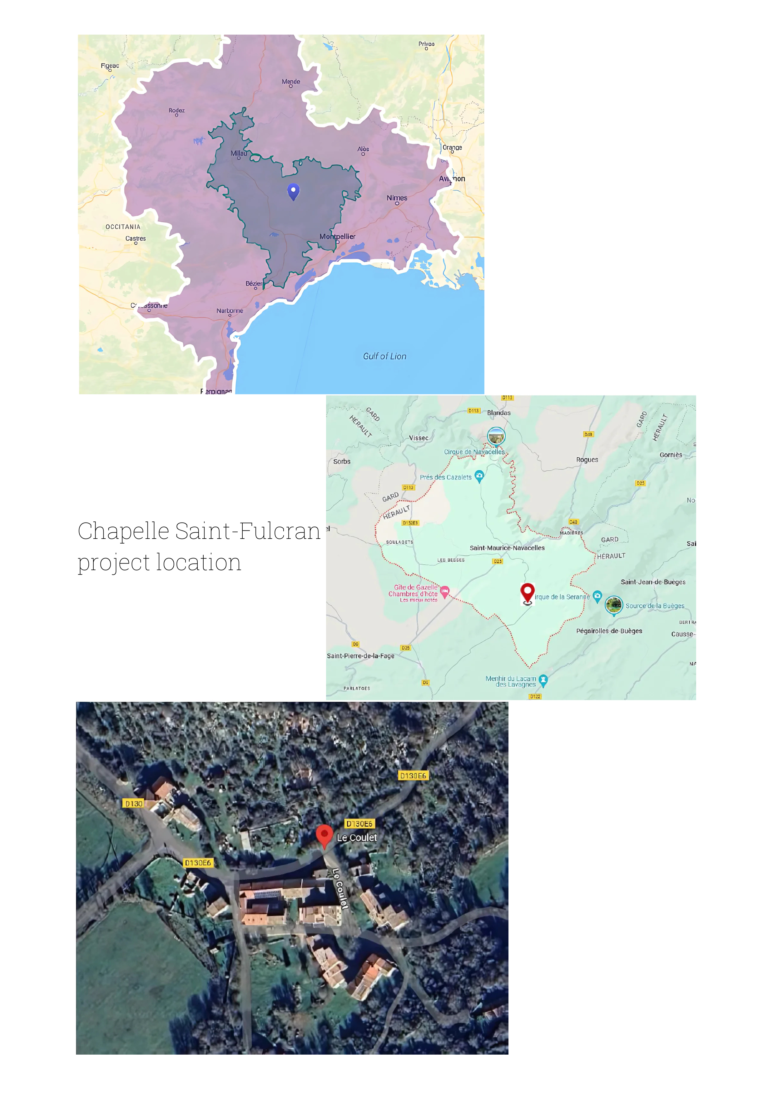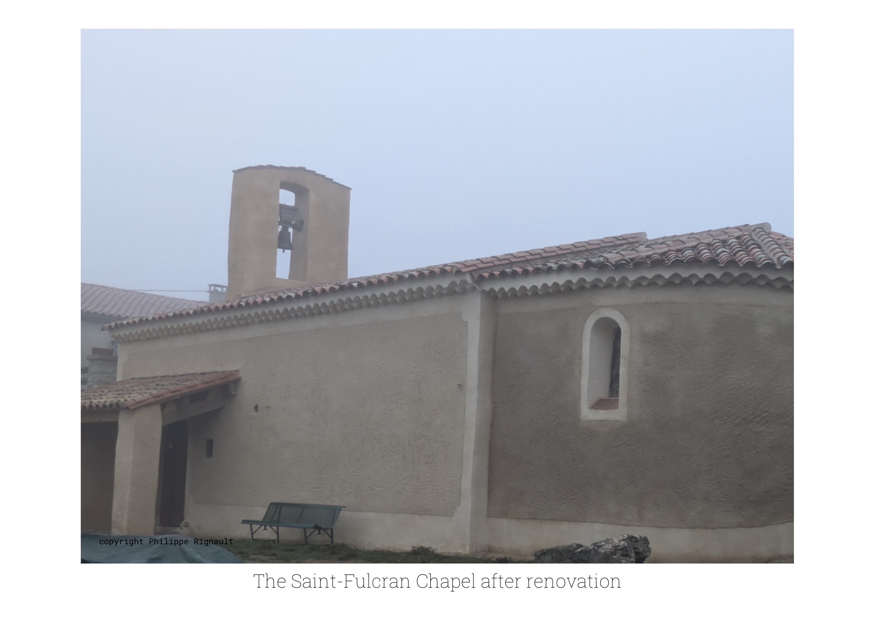 The redevelopment of the Chapelle Saint Fulcran will enable it to remain part of the village's heritage, respecting the original building, in particular by using old techniques for the exterior rendering and keeping the bell, preserving the symbol for the local population (in particular for the inhabitants of the hamlet of Coulet) and preserving its role as a meeting place.