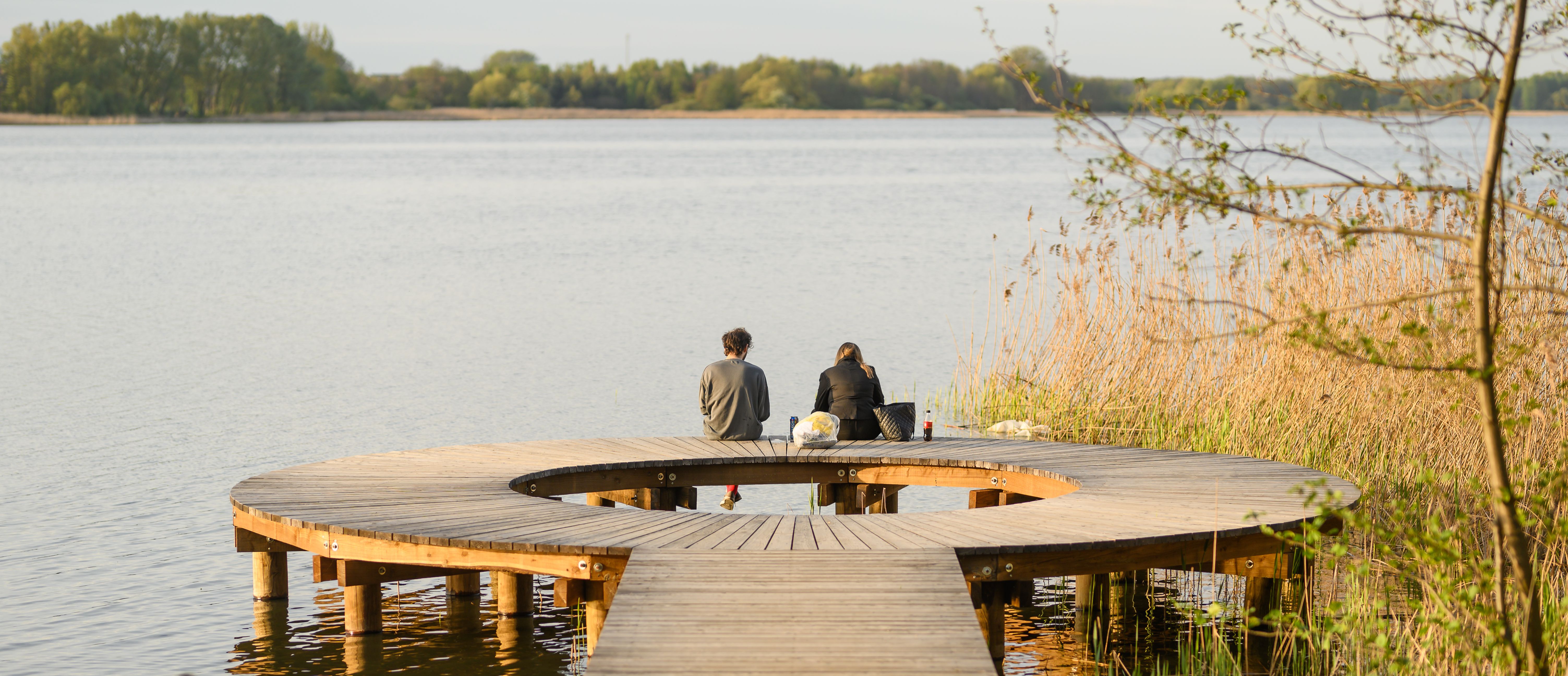 The project gave this space back to the residents. Simple and well-balanced design solutions were to fit harmoniously into the landscape of the lake, making it possible to observe and experience nature from different perspectives. The waterfront became an attractive meeting place for residents, giving them a wide range of leisure activities. It was very important in this project to invite residents to the artificial post-peat lake through judicious management of resources, simplicity, legibility