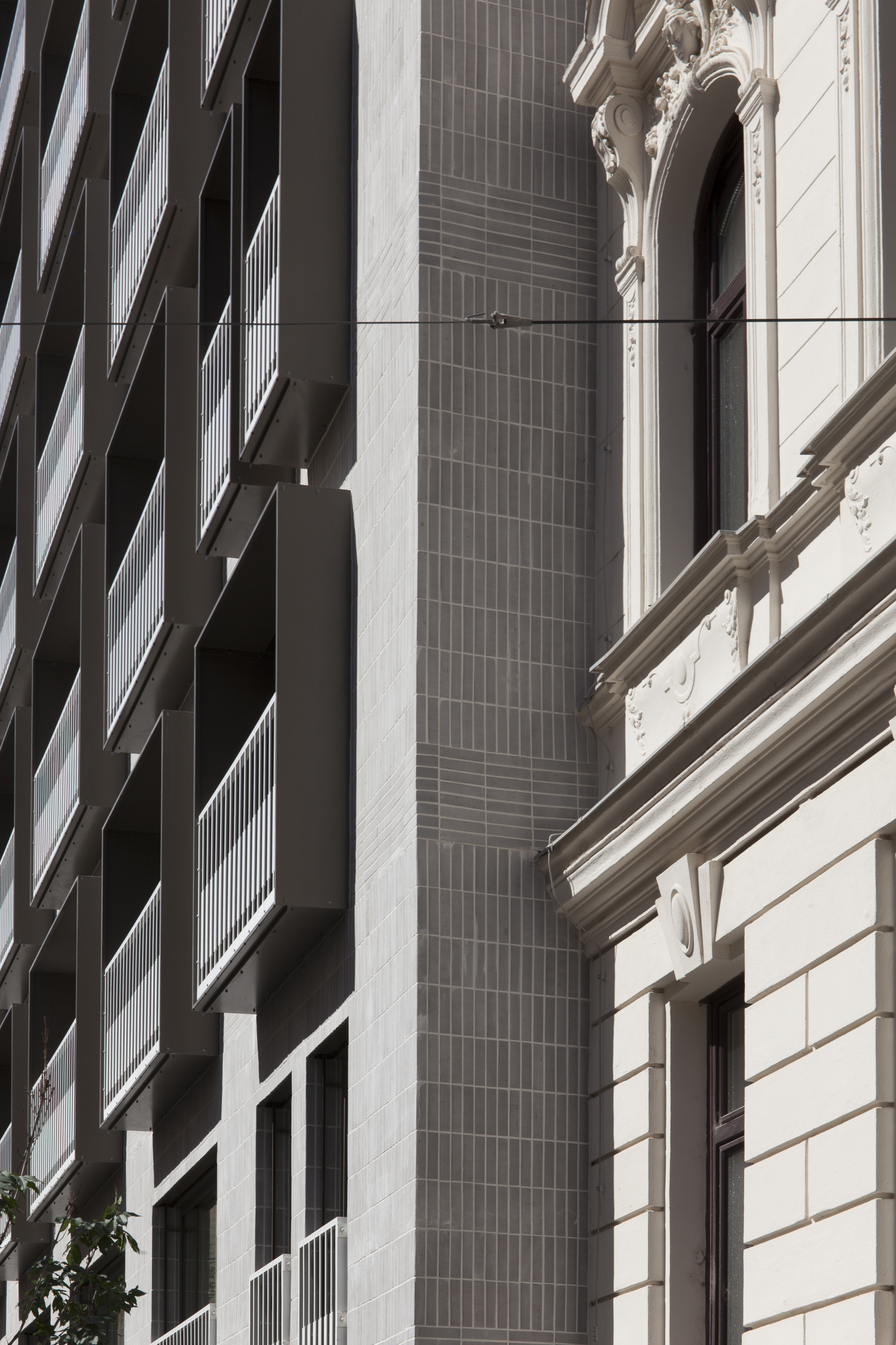 The revitalization project in Porzellangasse is an example of best practice in dealing with a building from the 1990s. The original building from 1998 was used as an office building. Now it houses a commercial space on the first floor and 24 apartments that meet the contemporary standard of a city apartment. The existing building was neither visually nor technically outstanding and only partially complied with official requirements. Demolition was never an option and would have been extremely difficult due to its location on Porzellangasse, which is served by a tram. A contemporary approach to the existing building for ecological reasons and a sustainable approach spoke in favor of preserving and converting the building. Most of the 24 apartments open on both sides of the building, allowing ventilation and providing additional outdoor space in the form of balconies and small terraces. Creating additional outdoor space was an important concern for the architects. The view to the outside and the ability to open the apartment not only increase the standard of living, but also visually enlarge the apartment. When designing the street-side facade, special consideration was given to the appearance of the building, and the color and materiality of the neighboring buildings were considered. Light grey clinker brick slips, alternating horizontally and vertically with the floor boundaries, give the front of the building a classic structure. The color of the dark window frames also reflects the street scene.