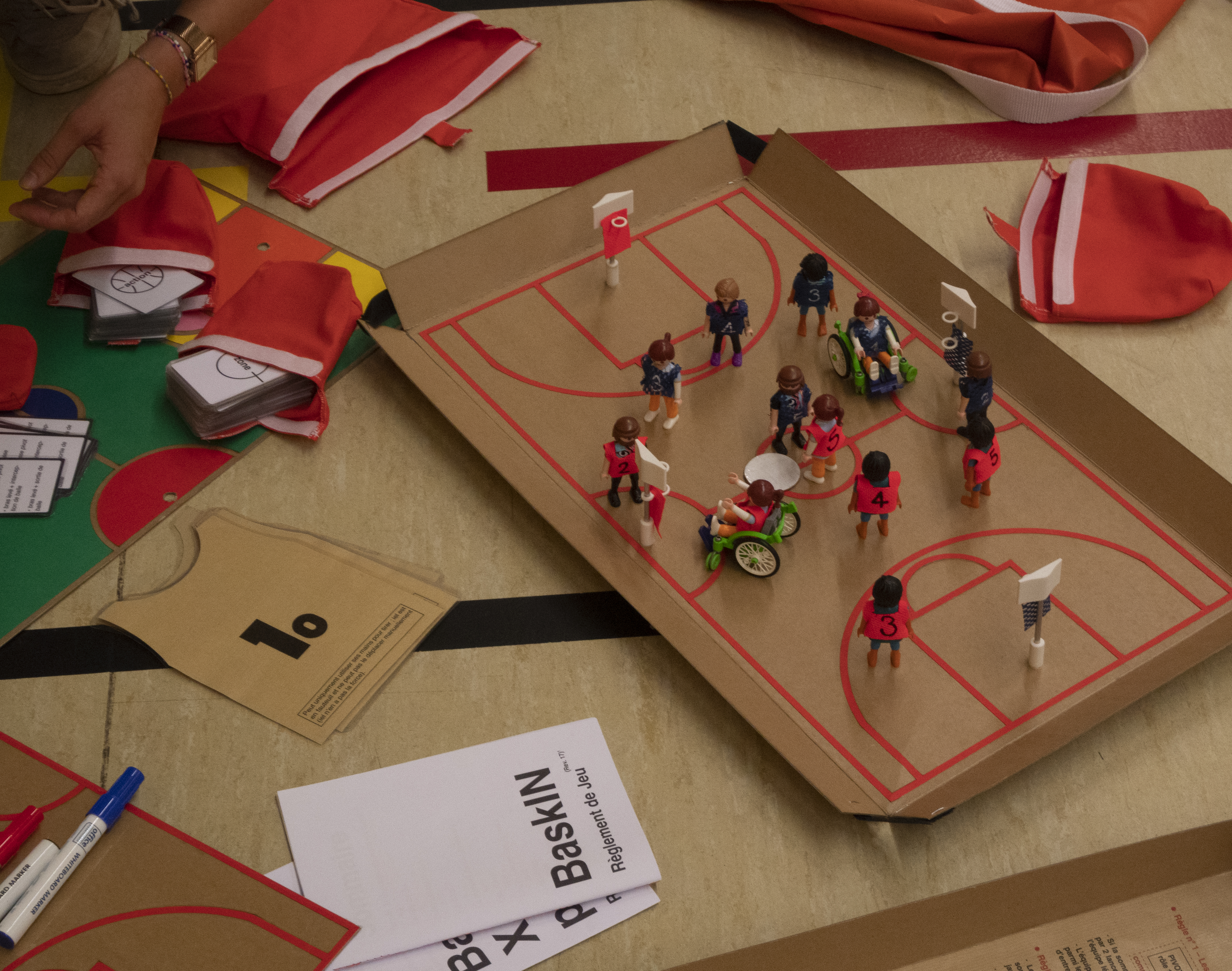 The mediation toolkit is the result of a co-creation between a sports club that welcomes people with handicaps for a mixed sport, baskIn, and a group of female designers. Together, we have created a device that meets the needs of coaches and mediators to help them learn and understand the rules of the sport in a fun way.