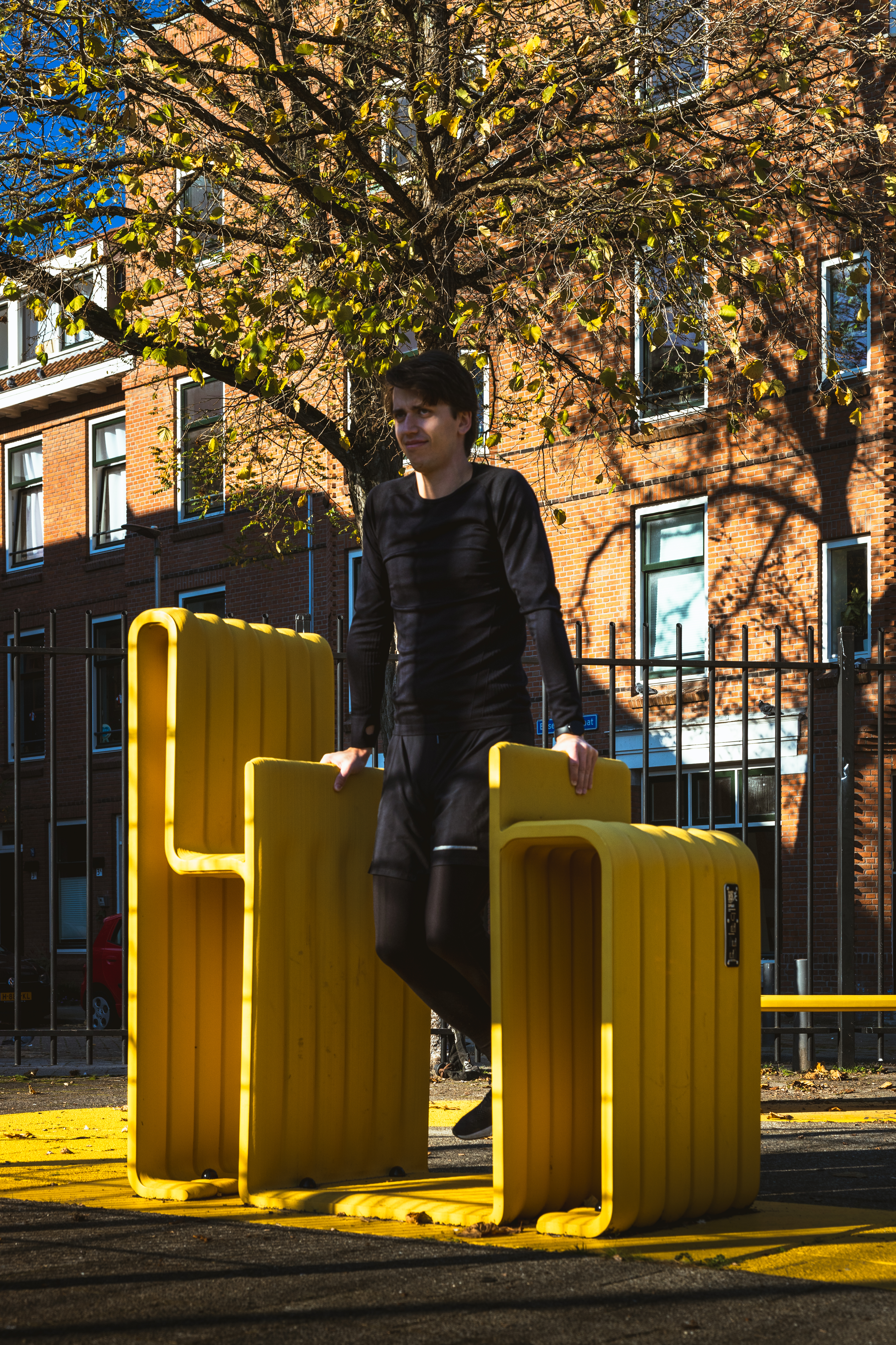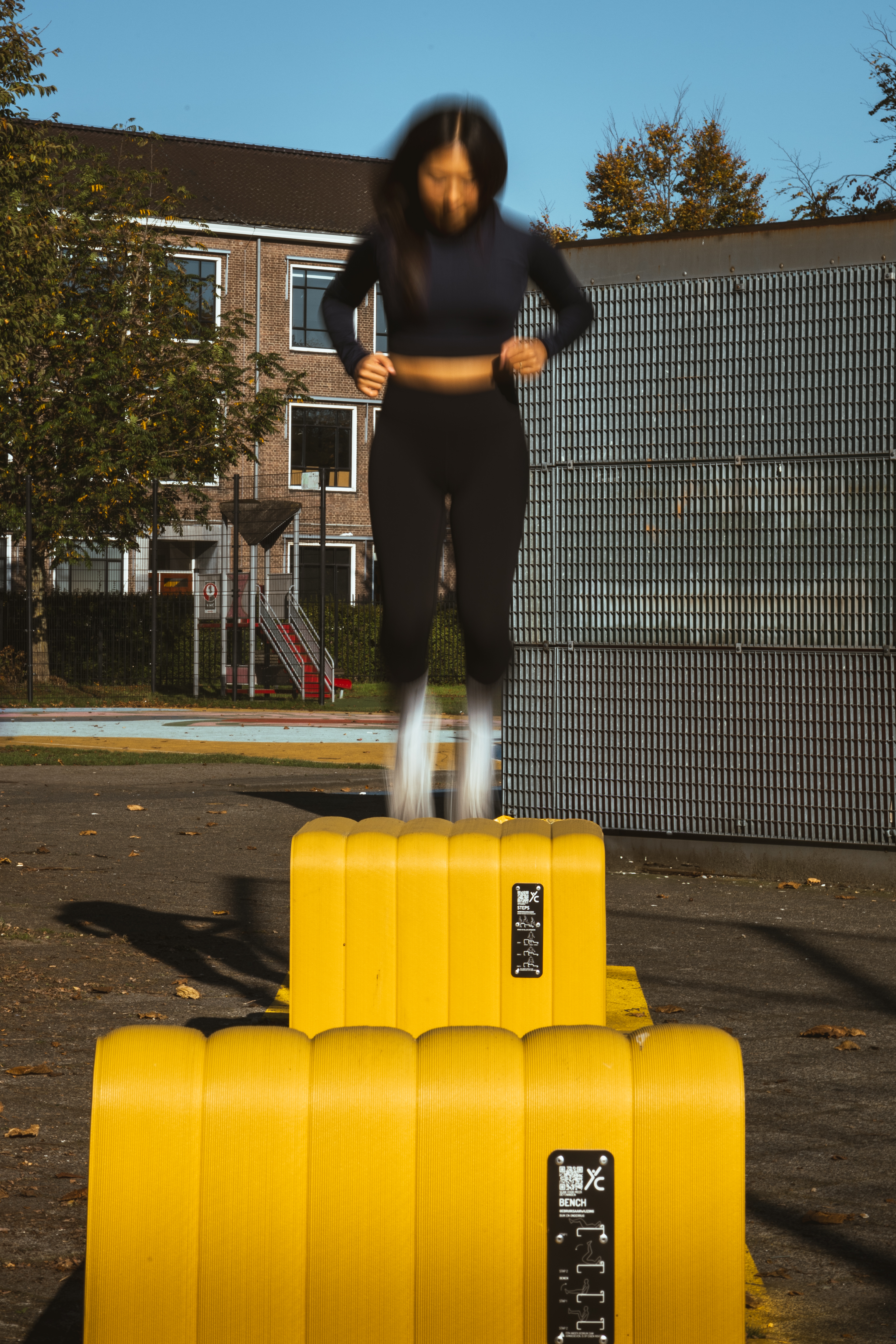Yellow Carpet tackles this by developing a 5 km running ring that connects existing outdoor sport facilities and adds a new 3D-printed outdoor gym location along the route. The objectives of the project are (1) to create a network of exercise facilities accessible to everyone (in time, space and cost), (2) to promote a healthy lifestyle and motivate inactive citizens to sport, (3) to activate and regenerate underused public space in the cities, (4) to stimulate the circular economy by using waste materials and (5) to explore the possibilities of innovative technology in the creation of an attractive product for outdoor fitness.