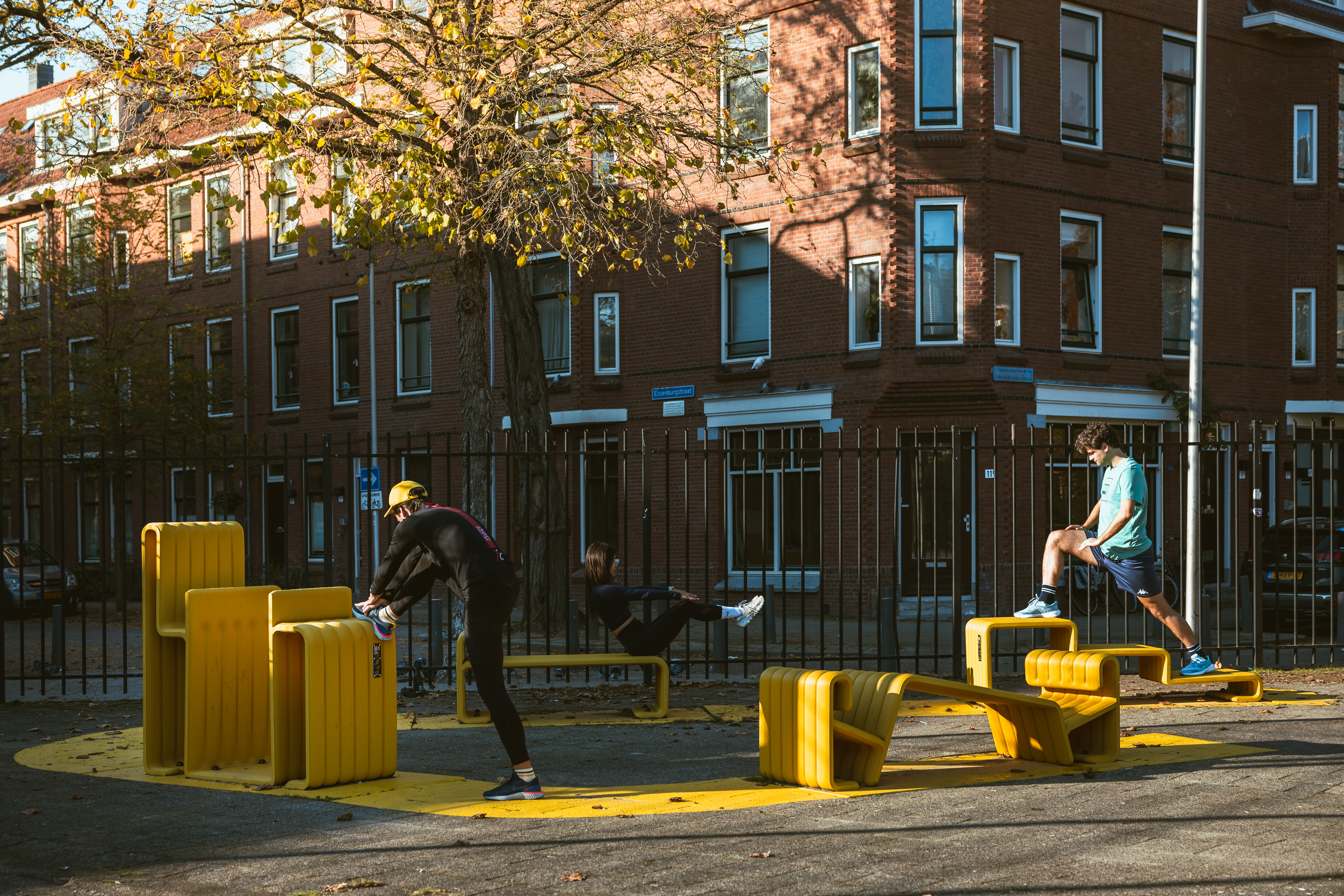 The project aims to enrich the local context by adding sports facilities in dense urban environments and simultaneously address multiple urban challenges: plastic waste, public health, underused public space, and circular economy.