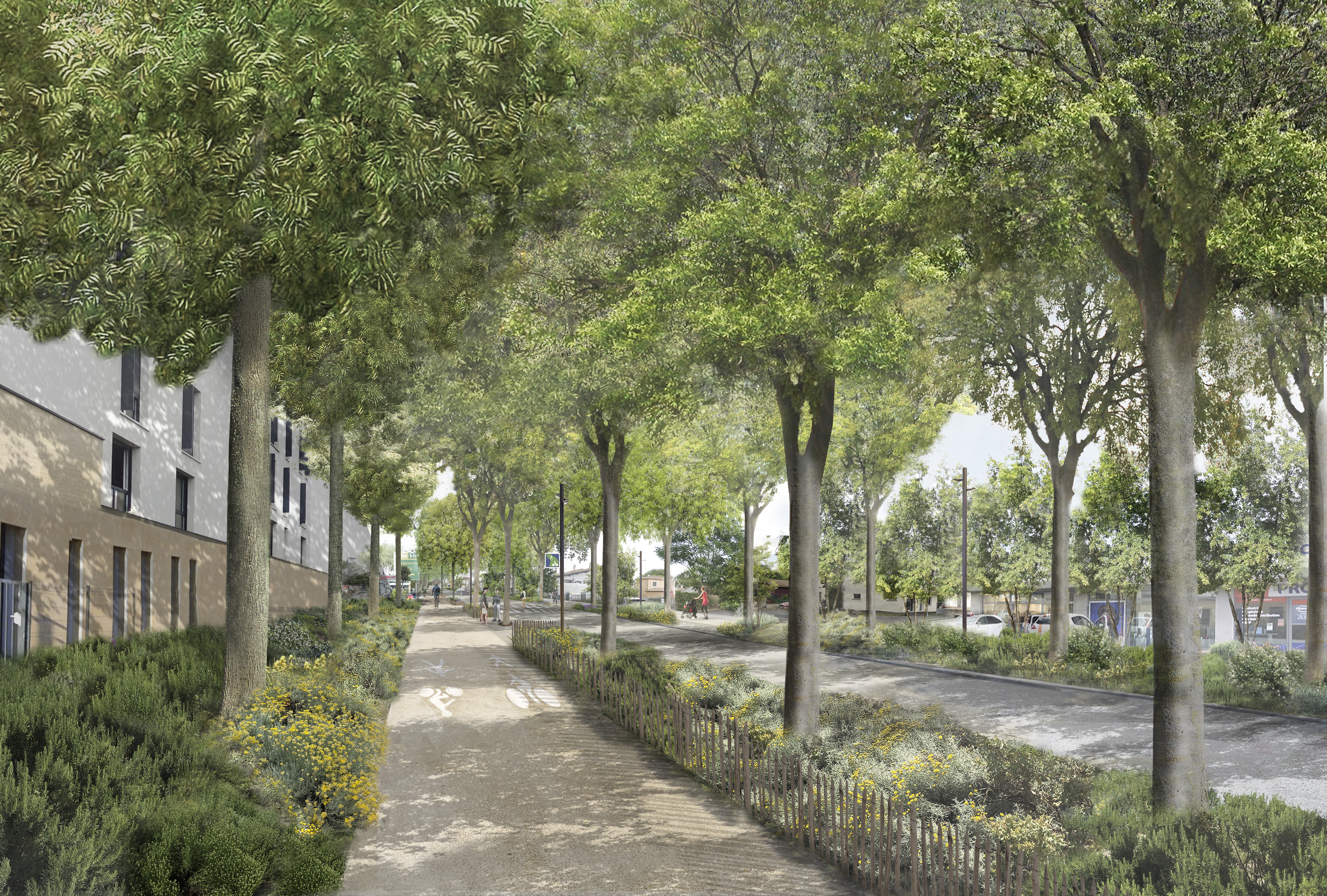 The project involves transforming a road into an urban boulevard: the width of the road will be reduced to allow for the creation of soft mobility routes. A green lane and a continuous, safe, lit and shaded pavement will be created. Soft modes will be given priority over cars to change the status of the road.