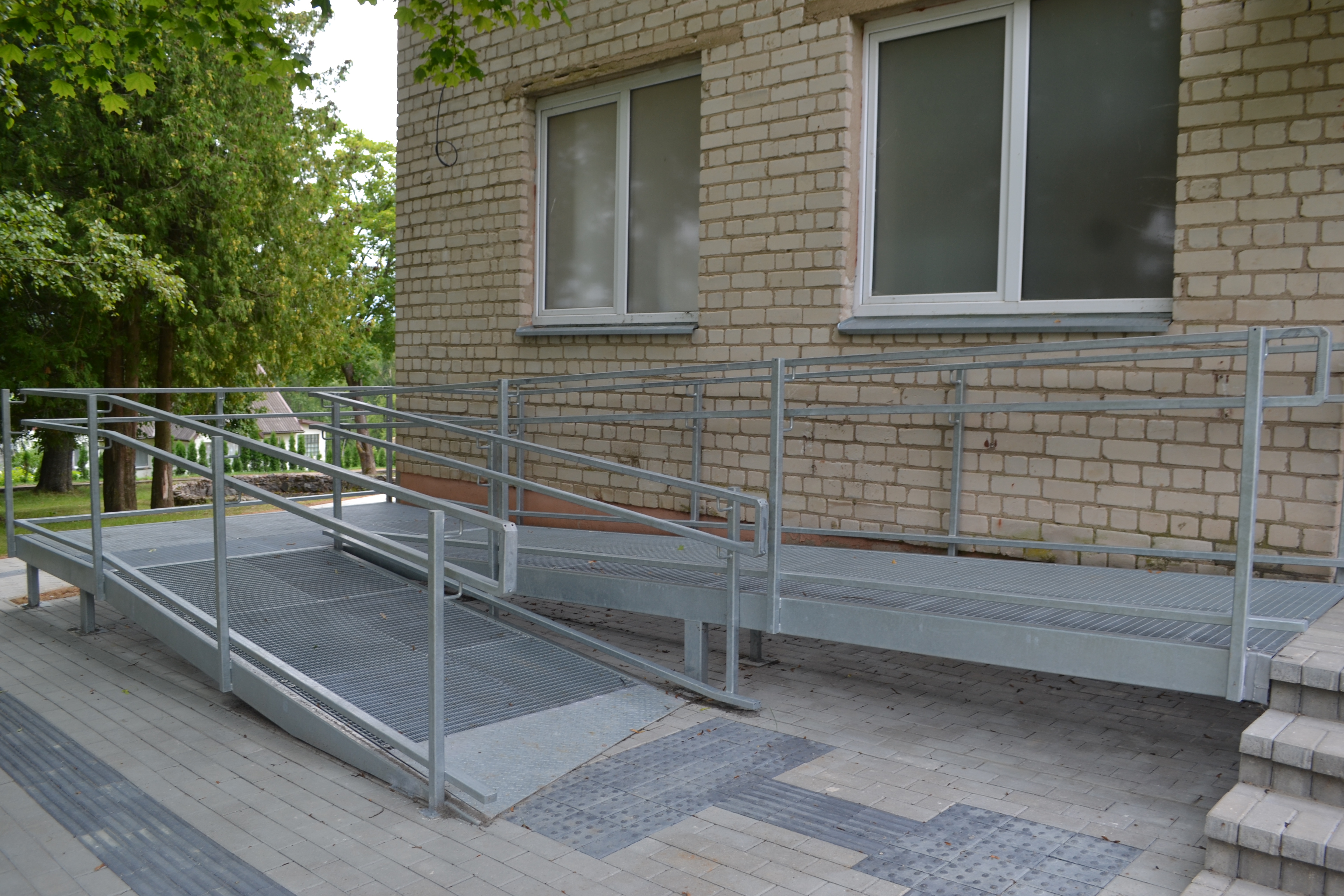 One of the main goals of the project is to ensure inclusion, which encompasses both physical accessibility and social inclusion. The technical design project for the infrastructure is guided by STR 2.03.01:2001 "Buildings and Territories. Requirements for the Needs of Persons with Disabilities" and the principle of universal design. Physical accessibility is ensured by designing both the building and outdoor infrastructure to be accessible to all persons, regardless of their disability. Decisions were made taking into account the needs of both persons with mobility disabilities and other persons who need the services provided in the infrastructure. Building: The premises are designed to be of sufficient size and furniture layout so that persons with wheelchairs can move freely within the premises. Adapted sanitary facilities, elevators and other amenities are installed. Outdoor infrastructure: The outdoor infrastructure is designed to be comfortable and adapted to everyone. An outdoor area with sports equipment adapted for everyone, including persons with disabilities, has been installed. The paths and other spaces are designed to be easily passable and safe for everyone. In addition to physical accessibility, great attention is also paid to social inclusion. The project aims to create an environment where all persons feel respected and valued, have the opportunity to actively participate in community life and receive the necessary assistance. Communication between residents is encouraged in the care home, and various activities are organized in which all residents can participate, regardless of their physical or mental limitations. A relaxation area, a training area adapted for seniors and people with disabilities, and a gardening area with a greenhouse and work tables for people with disabilities have been installed.