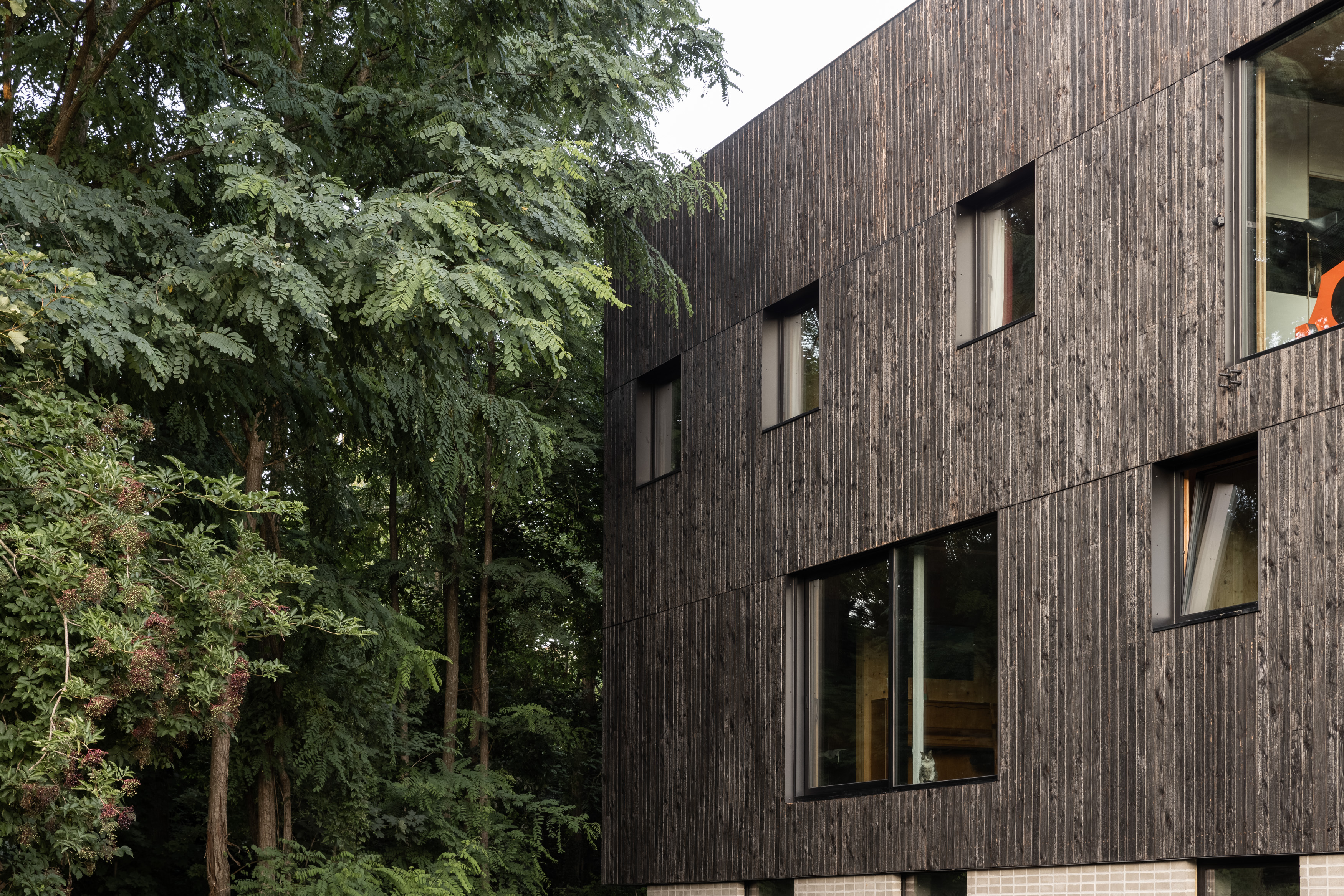 Designed through a co-creation process with the inhabitants, this project combines housing, offices, and shared spaces (garden, kitchen, guest room, etc.). Located in the Saint-Servais district in Namur, the site connects directly to the station via the Ravel, promoting sustainable mobility. A parking area also serves as a buffer between the main road and the building.