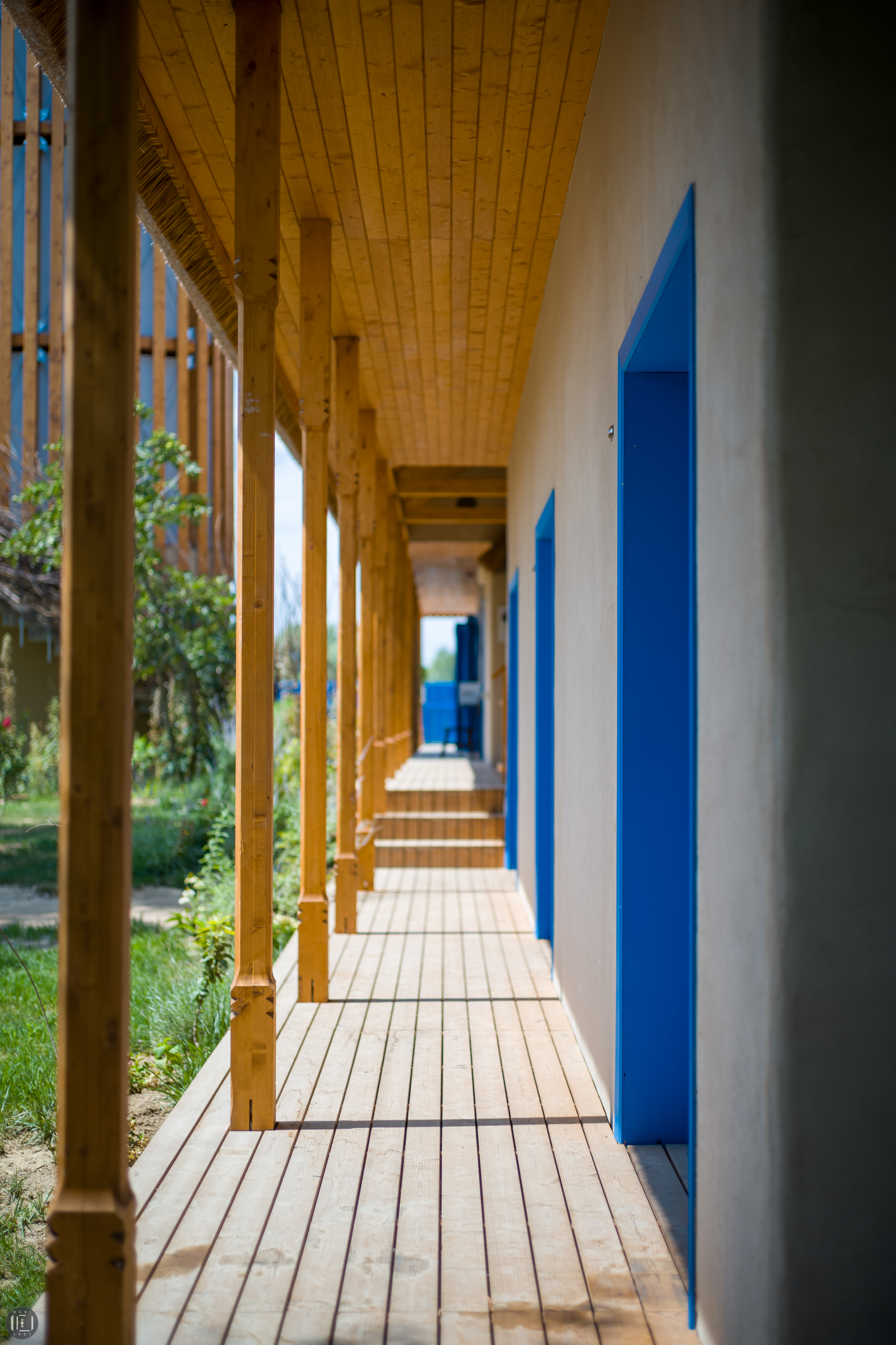 Built on the site of Olympic multiple-champion in canoe Ivan Patzaichin’s parents' home, it integrates eco-contemporary building practices with local architectural traditions, using natural materials such as wood, hemp, and reed.