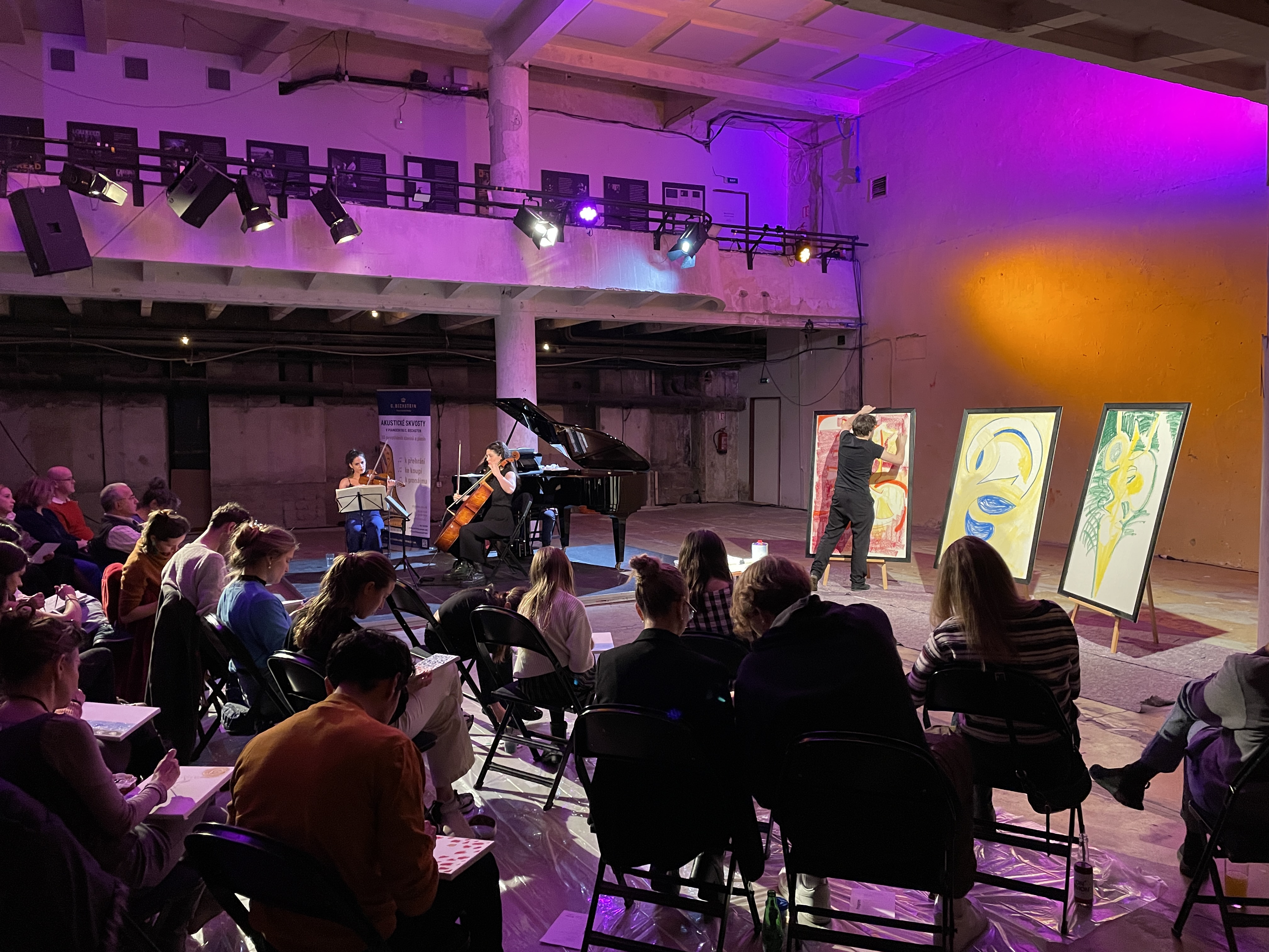 Collab’s Cordelia Piano Trio and painter Marius S. Binder created a live artwork on stage in response to the music. At the project’s Prague concert, audience members were given paints and canvases too. This expanded audience perception of the music in terms of colour, shape, and form, and was inviting for younger audiences and those new to classical music.