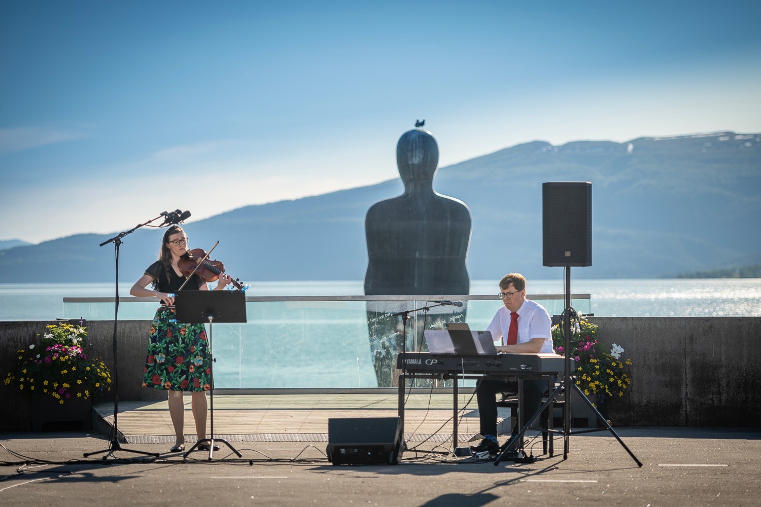 The Nordic Duo (2023) performed on the Mo I Rana seafront before Antony Gormley’s Havmannen sculpture, playing music reflecting the city’s rapid development and industrial heritage.