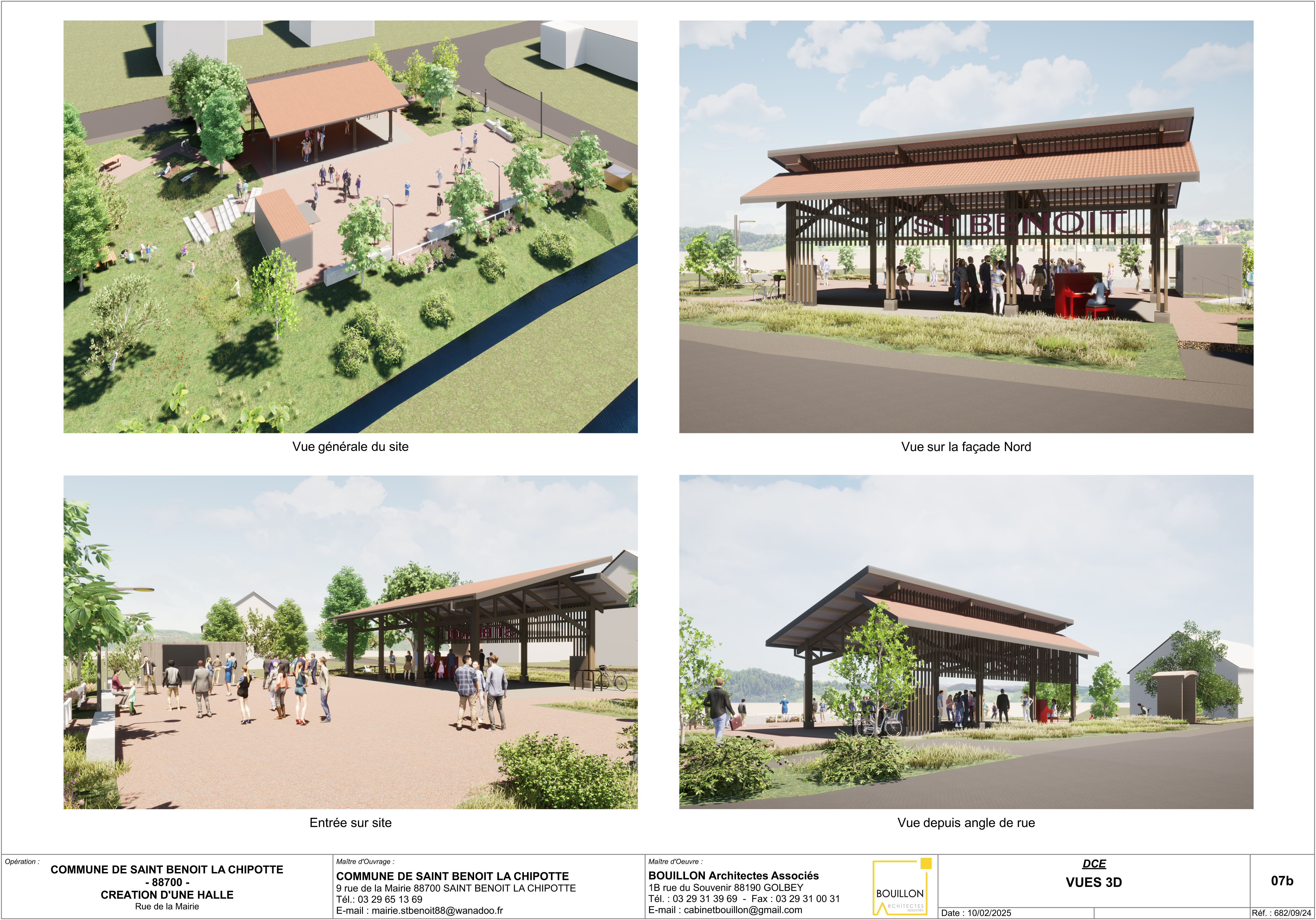 It saw the opportunity to create a friendly public space for relaxation and meeting by proposing the creation of green spaces coupled with the construction of a multi-service hall. This sheltered space will be able to host events such as concerts, spring and autumn markets, the annual communal picnic.