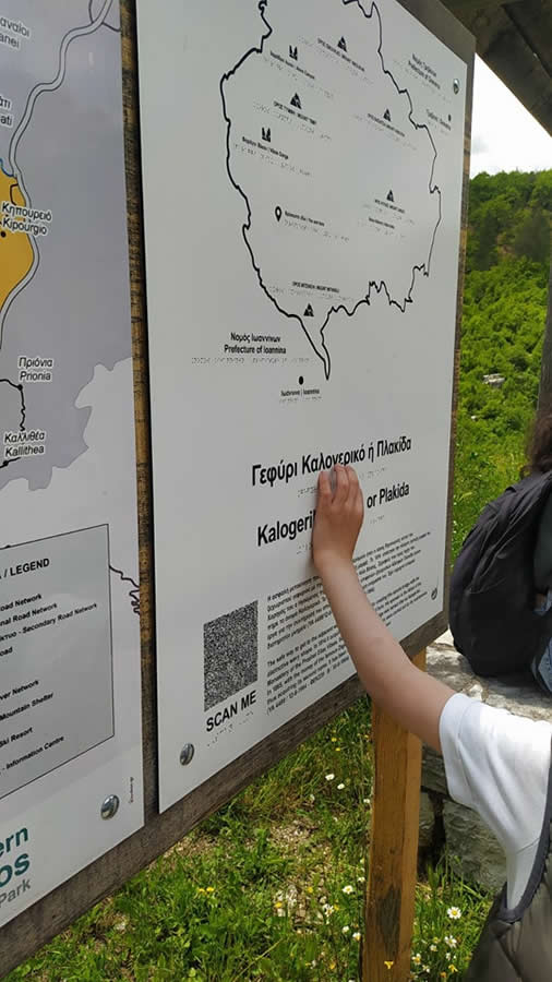 Listen-Touch-Feel aimed to enhance cultural accessibility and inclusion for visually impaired individuals by providing an innovative, multi-sensory interpretation of the Vikos-Aoos UNESCO Global Geopark. Implemented by Ecomuseum Zagori, the initiative sought to improve spatial perception and engagement with natural and cultural heritage through interactive technologies and participatory experiences. Direct beneficiaries among visually impaired people were trainers, educators and volunteers as well as associations and institutions supporting accessibility in cultural landscapes. More specifically, traditional historic bridges, cultural landmarks of the Geopark, were scaled down to 3D printed models along with their surrounding landscape, to be interpretated through touch and soundscape recordings with audio stimuli, addressed to small groups. The project was structured into two key phases. First, a capacity building and training to inform the wider public regarding new technological possibilities on the accessibility of cultural landscapes, by presenting best practices and specific actions from open-source products to commercial technologies. Next part was devoted on-site implementation which involved interpretive walks where participants engaged with scaled 3D-printed models of historic bridges and landscapes, supported by soundscape recordings and audio descriptions. The project introduced an experiential soundscape learning approach, utilizing acoustic ecology principles to replace visual perception with auditory stimuli, encouraging participants to engage in soundscape recording. The project successfully developed an inclusive methodology for interpreting cultural landscapes, enabling visually impaired individuals to connect with heritage through touch and sound. It also raised awareness of accessibility challenges and solutions, fostering collaboration among visually impaired individuals, educators, and accessibility advocates.