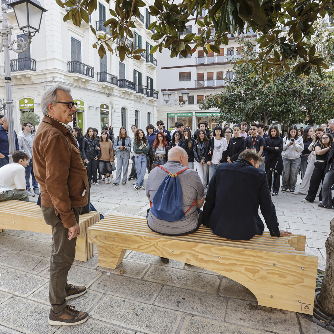 Through urban, cultural and social regeneration MAS WEEK intends to provide a potential tool to guide the transformations of cities towards environmental sustainability and a guide in the co-construction of sustainable city with the repercussions that such processes trigger on the entire urban and social system. The territory of Taranto is experiencing a particular historical moment from different points of view: social, economic, cultural and environmental. This must be read in the light of recent events that see the transformation of the city from pre-industrial to post-industrial. Taranto was the largest Italian steel producer (the largest in Europe for much of the twentieth century) and it still is one of the most polluted cities in Italy. Among the key objectives of MAS WEEK there is that of breaking the limits of a discussion that places the steel industry at the center, trying to build a stringent context that circumscribes and limits the industrial area, mentally and physically, changing the reference system and transforming the critical issues of the city into potential. One of these tools is MAS_TARANTO INTERNATIONAL WORKSHOP (2024’s title was “Mediterranean Living in the Contemporary City). During the workshop we have imagined a new dimension of sustainable living, in which the citizens of Taranto were encouraged to describe the spaces in which they live. During the five days of the workshop, participants realized projects aimed at creating urban spaces for living together. Internationally renowned architects guided participants in the co-design and self-construction of sustainable and innovative urban furniture, demonstrating how it is possible to reconcile creativity and sustainability outside the logic of market The workshop promoted an integrated and sustainable vision of Mediterranean living, demonstrating that it is possible to reconcile innovation and tradition in sustainable way to improve urban experiences.