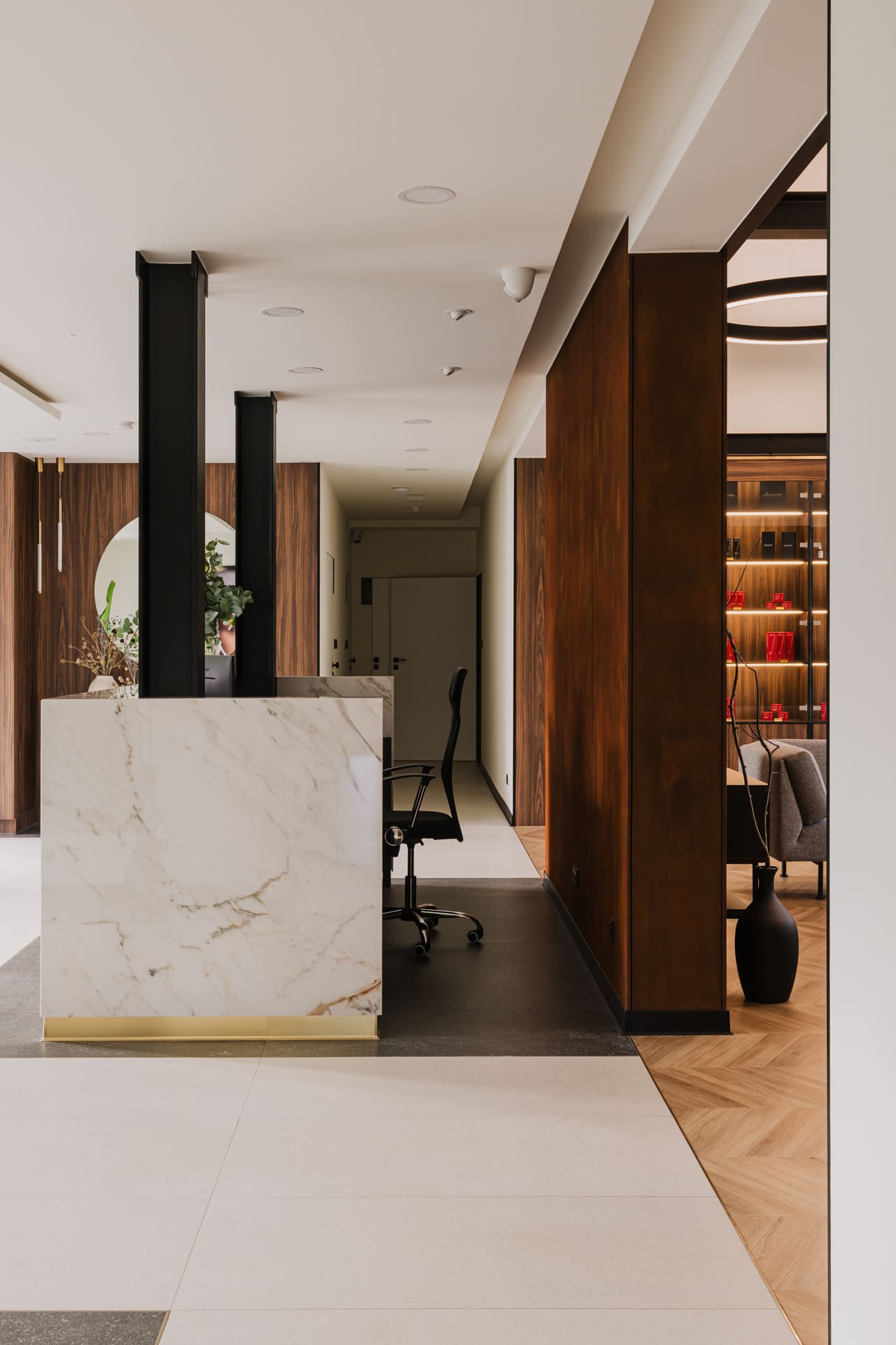 Quality of Experience: The design prioritizes a comfortable and welcoming atmosphere for visitors. The central reception area, with its double-height space and abundant natural light, creates an open, airy feel. Accessibility was also a key consideration, with features such as wide doors and a lift ensuring inclusivity for all visitors.