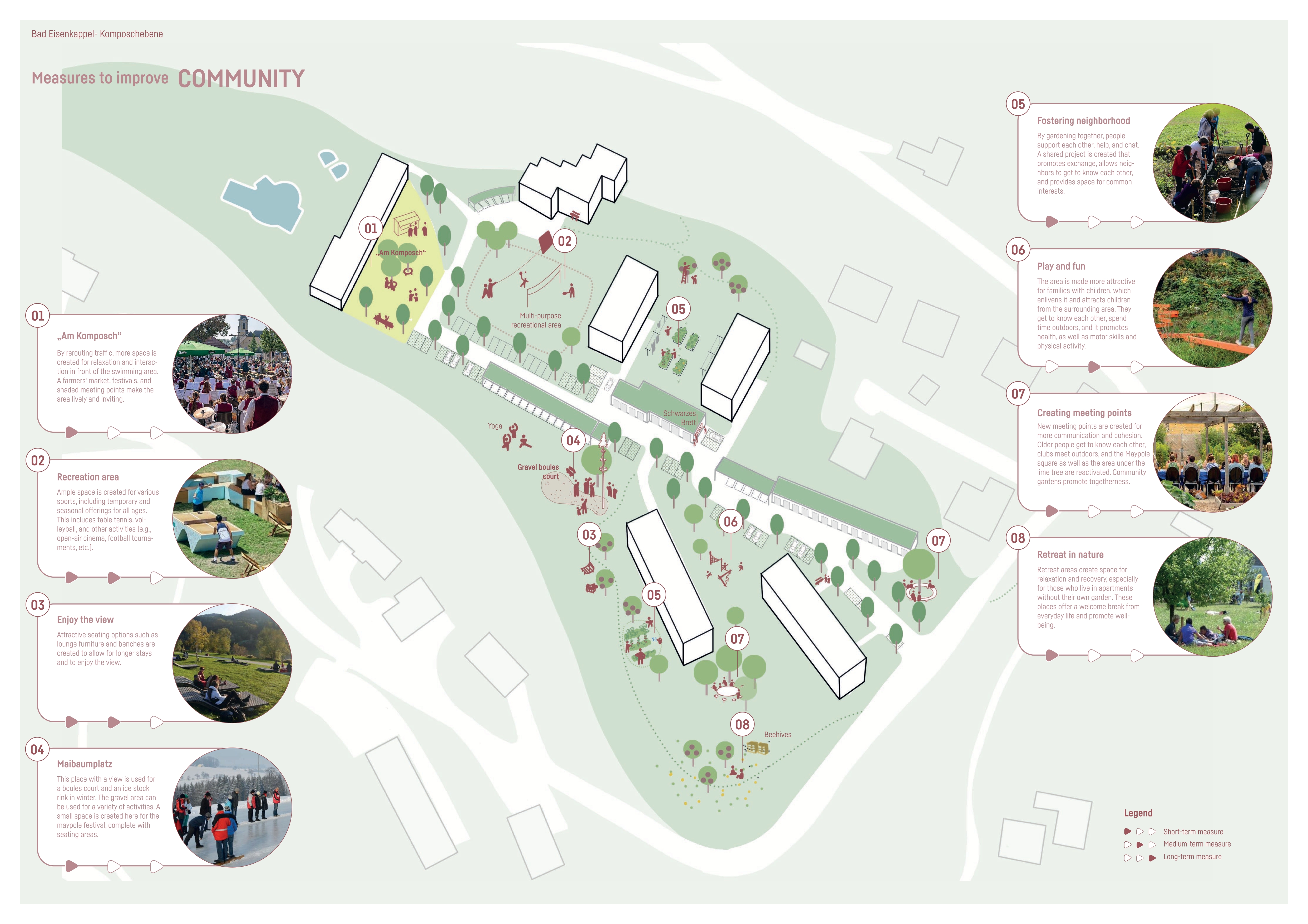 Integrated Planning: Combining expertise from various disciplines to create a holistic and sustainable renovation strategy and attractive offers for mobility and open space (private, semi-public and public). The involvement of the municipality in the planning process adds to practicable solutions that are adapted to local needs.