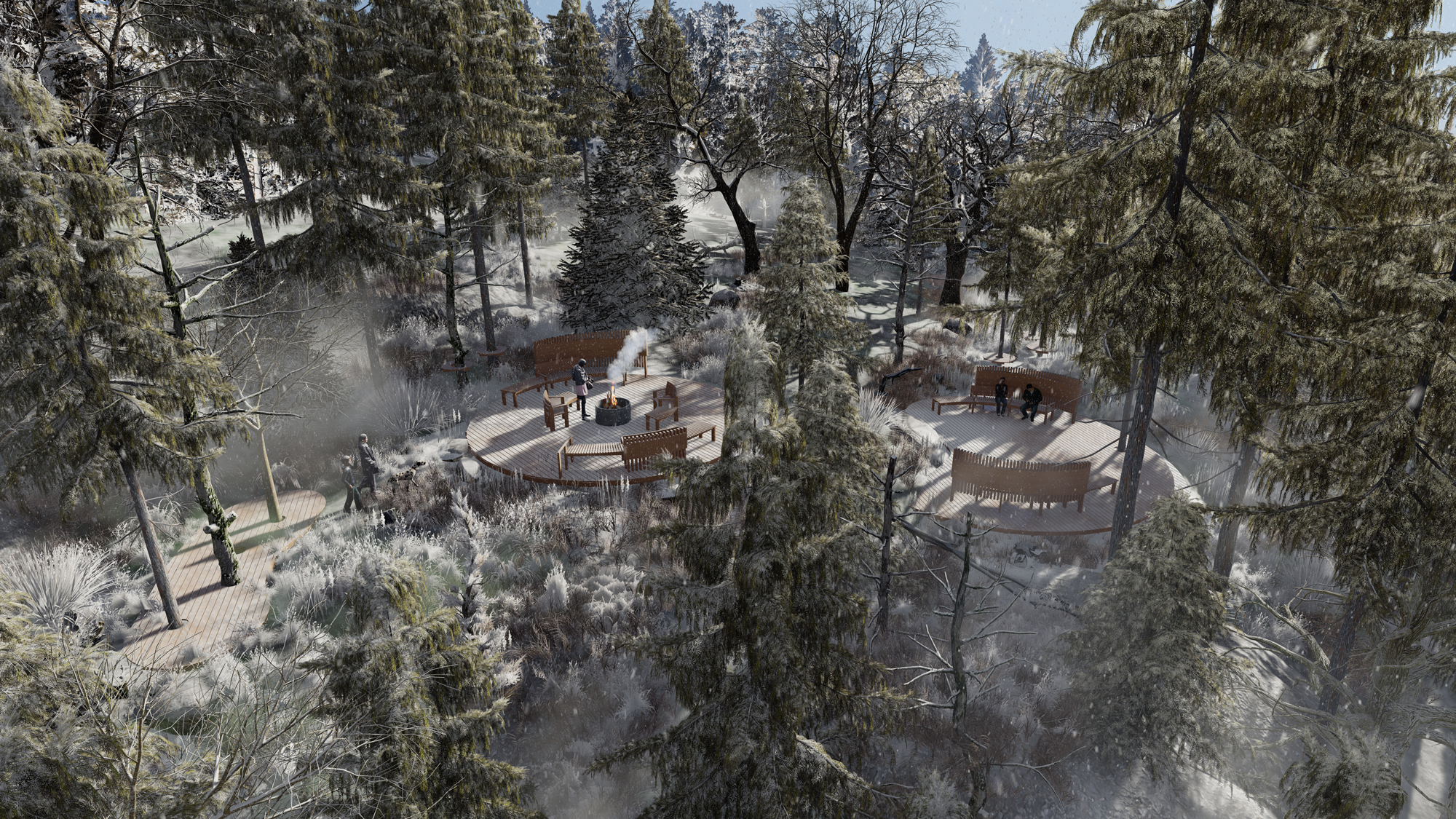 2. Increased Outdoor Activity & Well-Being – The project encourages people to spend more time outdoors, particularly in winter. By integrating fire pits, seating areas, and sheltered spaces, Vinterrum promotes mental and physical health through increased socialization and contact with nature.