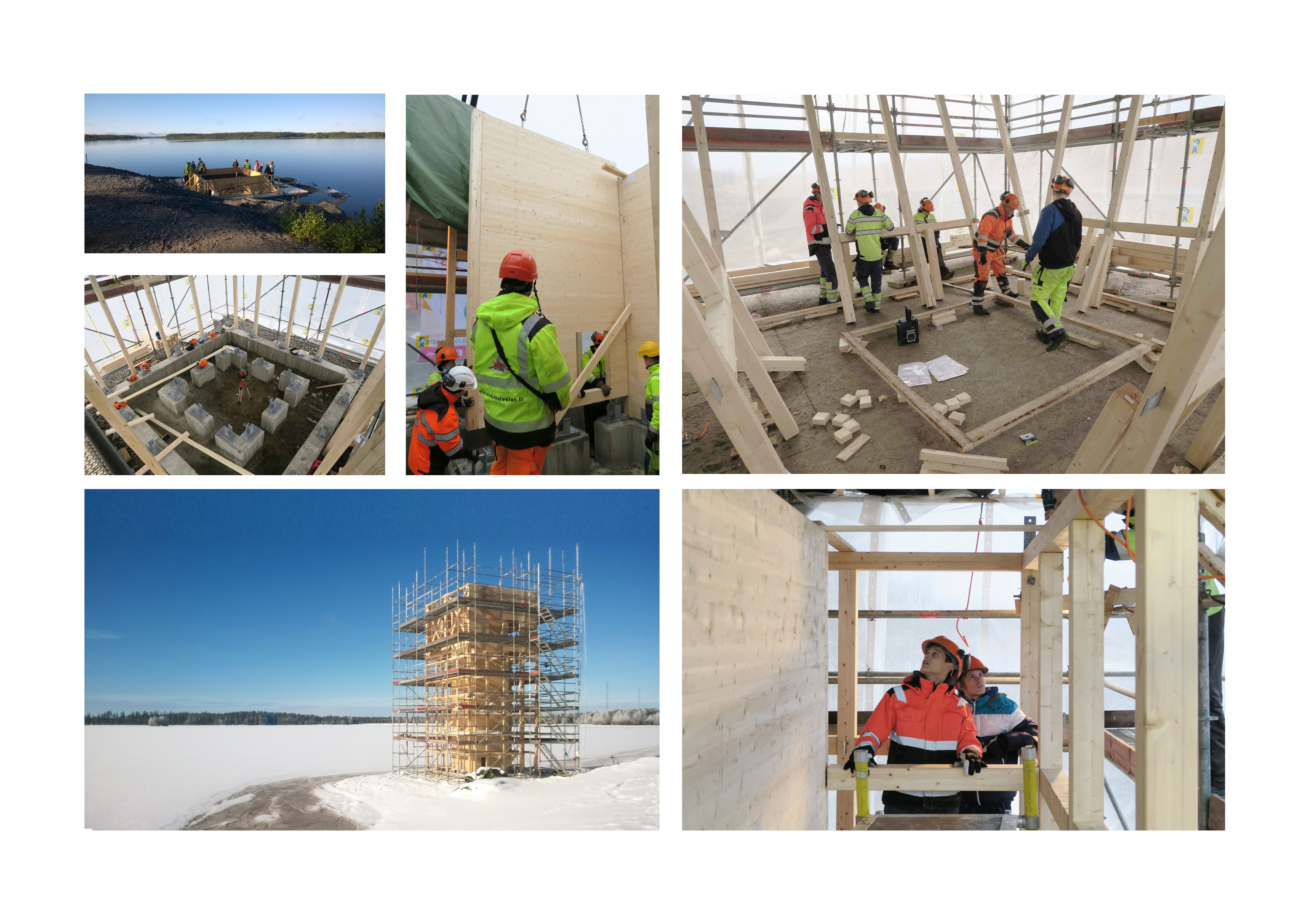 The Periscope Tower provided an opportunity for a collaborative process between various parties knowledgeable in the different aspects of building with wood. Bringing together the knowledge of master carpenters skilled in traditional methods of working with wood and an understanding of the potential of the new ways of industrial prefabrication, the collaborative process involved architects, local representatives of the CLT production industry, construction engineers as well as students and teachers of the local vocational school for building and construction skills. The entire process was tailored to facilitate a learning experience for the students and to support the exchange of knowledge between all parties involved in the process.