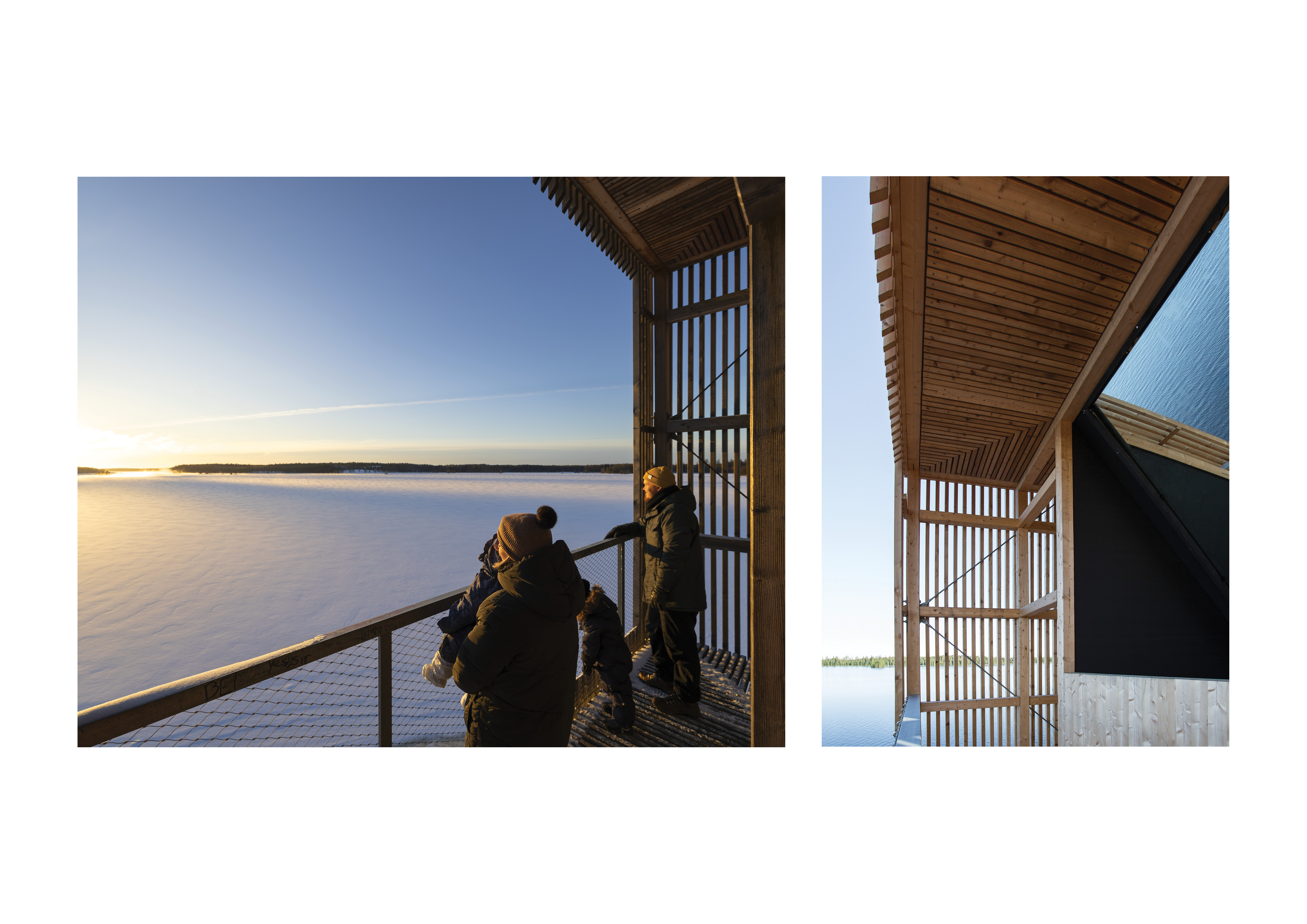The tower is part of a larger network of recreational paths in and around the city of Seinäjoki. It is intentionally designed to create a destination and a place to take a pause along the path. It provides an opportunity for contemplating on the views over the lake and invites people to stop to observe life in the nature as the seasons shift from summer to fall and from winter to spring.