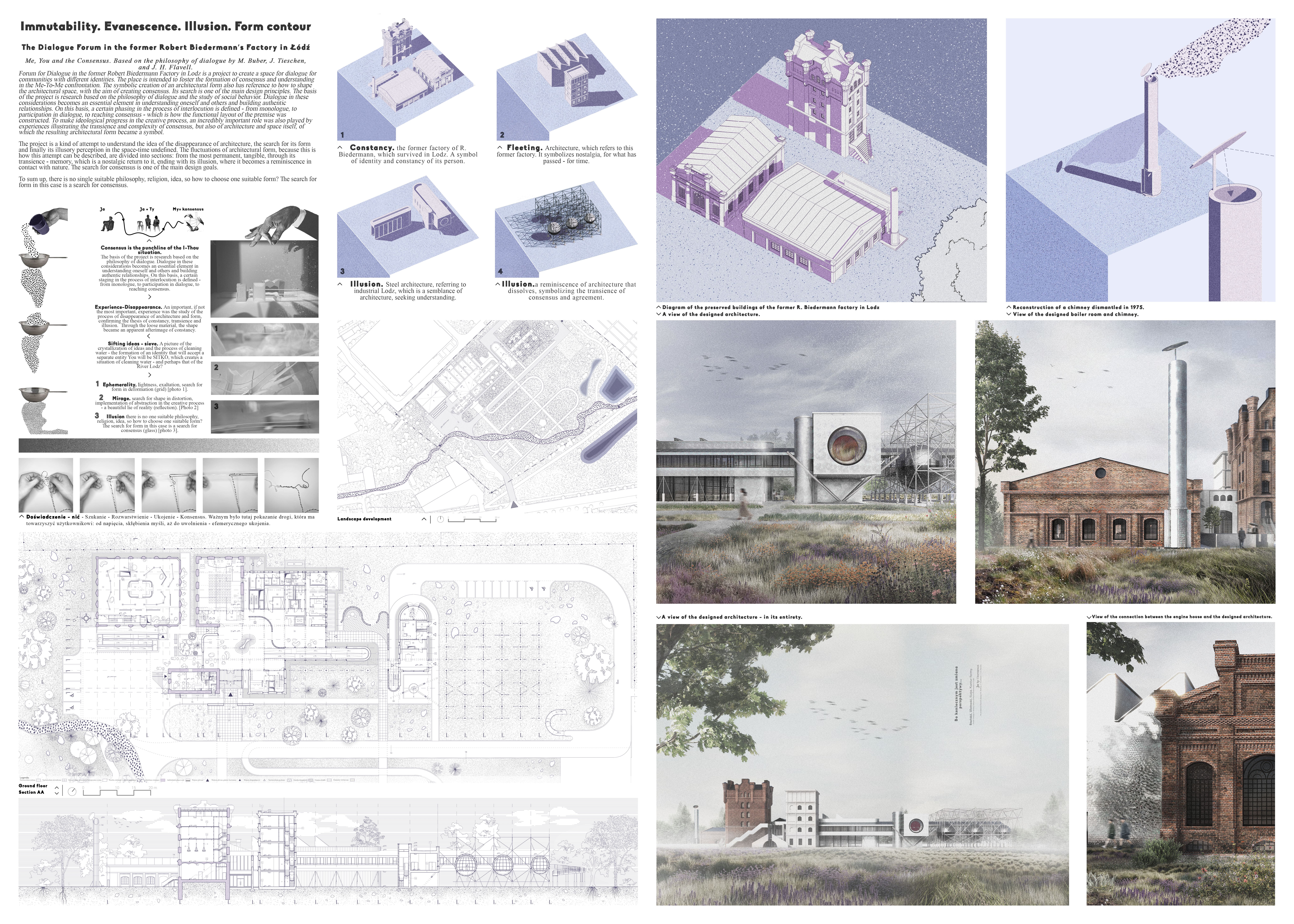 The Dialogue Forum in Łódź project envisions a space for dialogue among communities of different identities. It aims to foster understanding in the confrontation of I-You-We. The symbolic creation of an architectural form reflects how spatial design can support consensus-building - one of the project’s main goals.