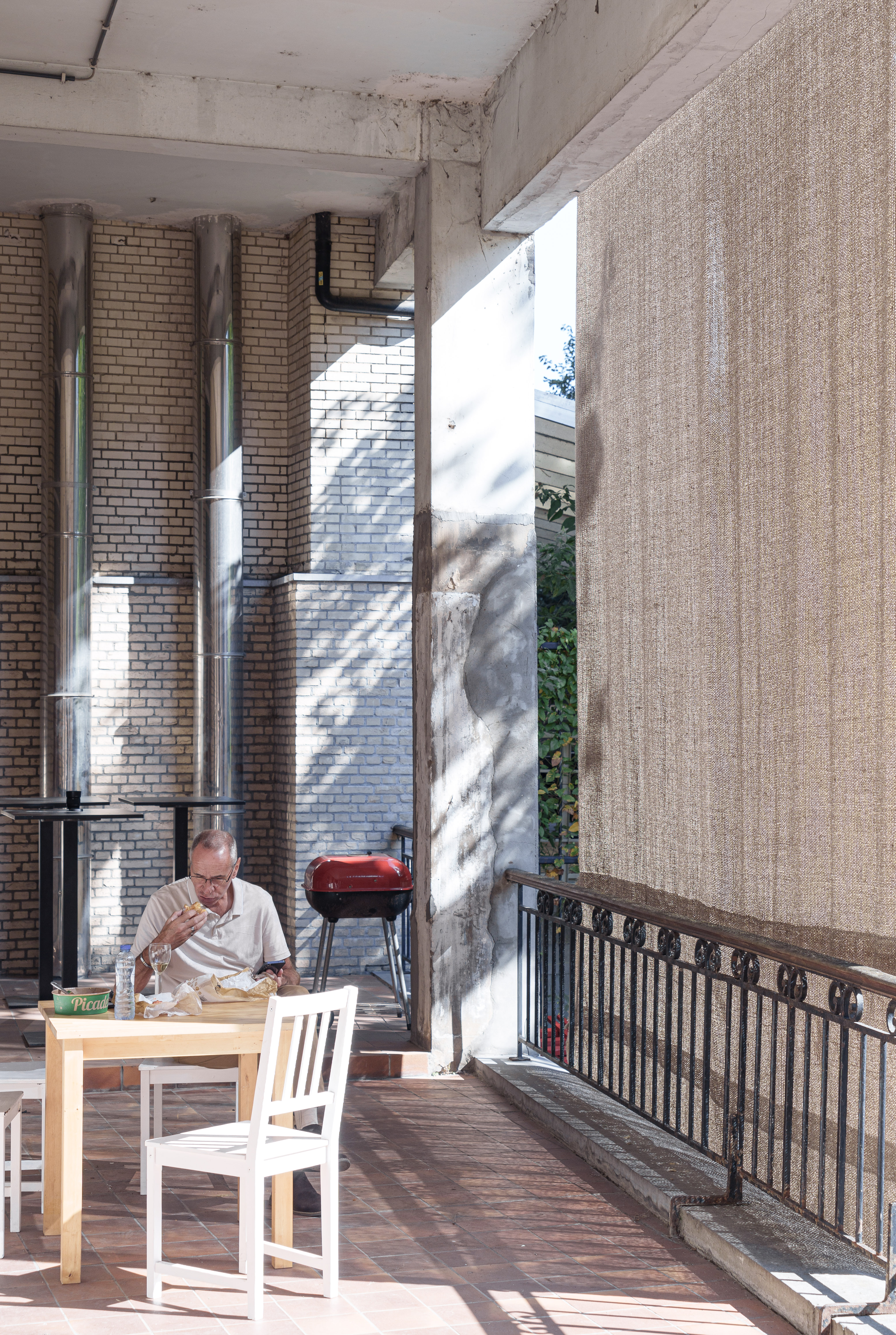 During the research phase, the technical workshops at Recyclart helped me install the tarpaulins on the administrative building. Arnaud, from Recyclart’s Fabriek, also contributed his expertise by proposing technical solutions to hang the tarpaulins using the resources available to us. The tarpaulins will likely be reinstalled at the end of April 2025 in order to gather more precise feedback on their use.