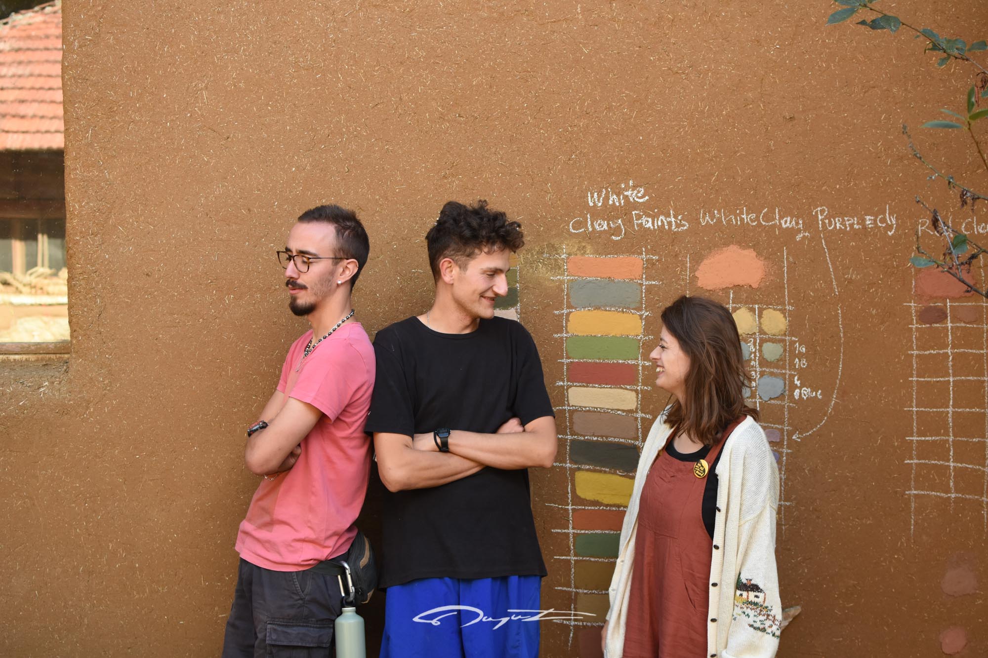 We often say that natural buildings care about aesthetics and that objects made out of earth, straw, and wood are beautiful. During some of the activities designs of objects or murals were created. During youth exchanges smaller objects were constructed with earth, rammed earth and cob fire pit, clay murals, fine plastering and sgraffito earthen technique.