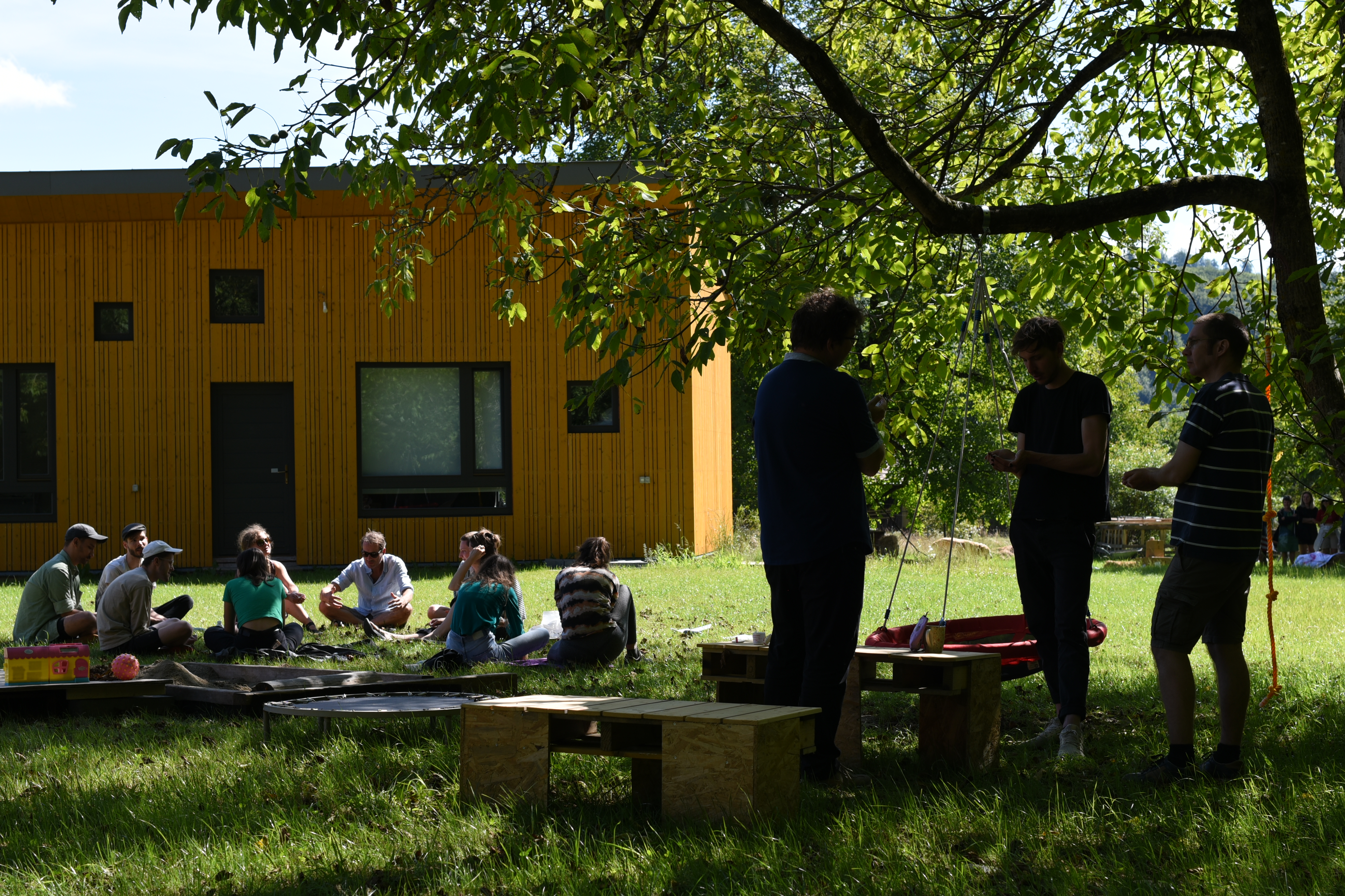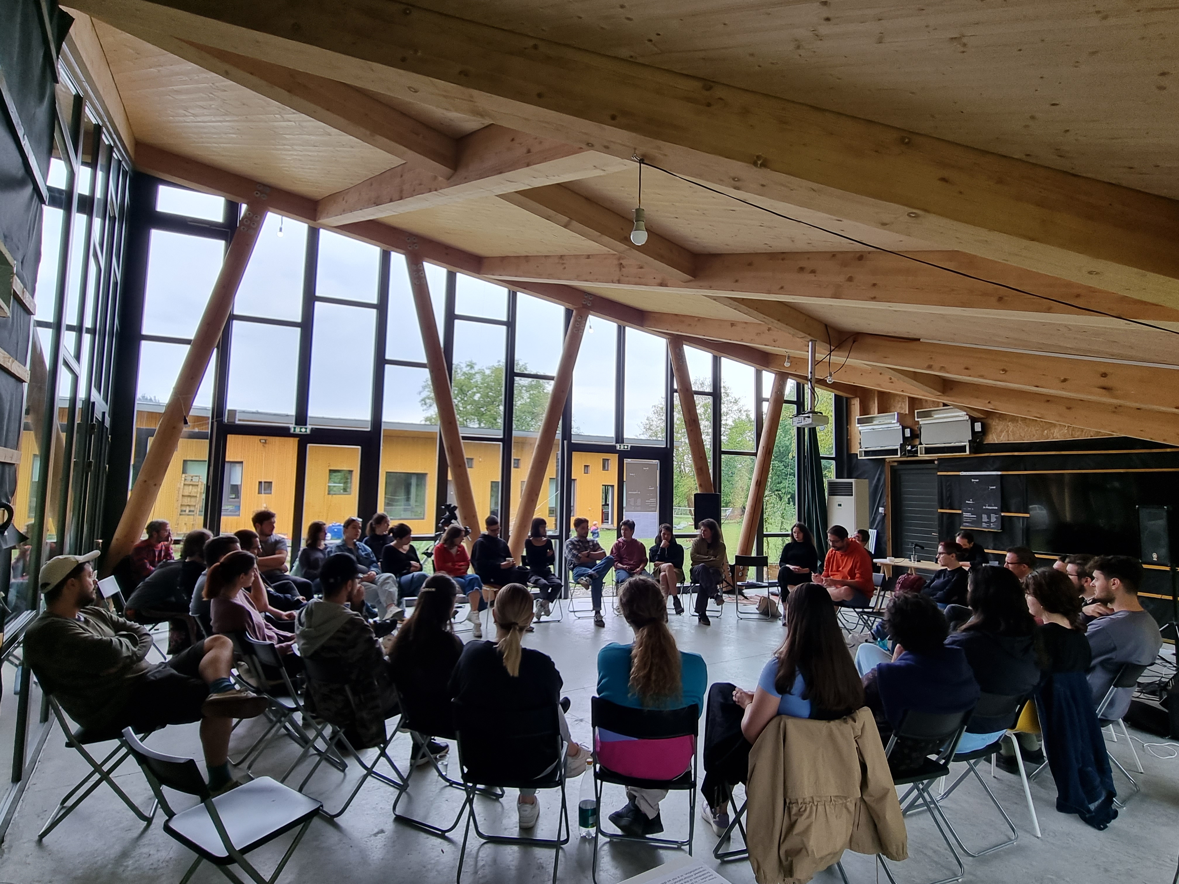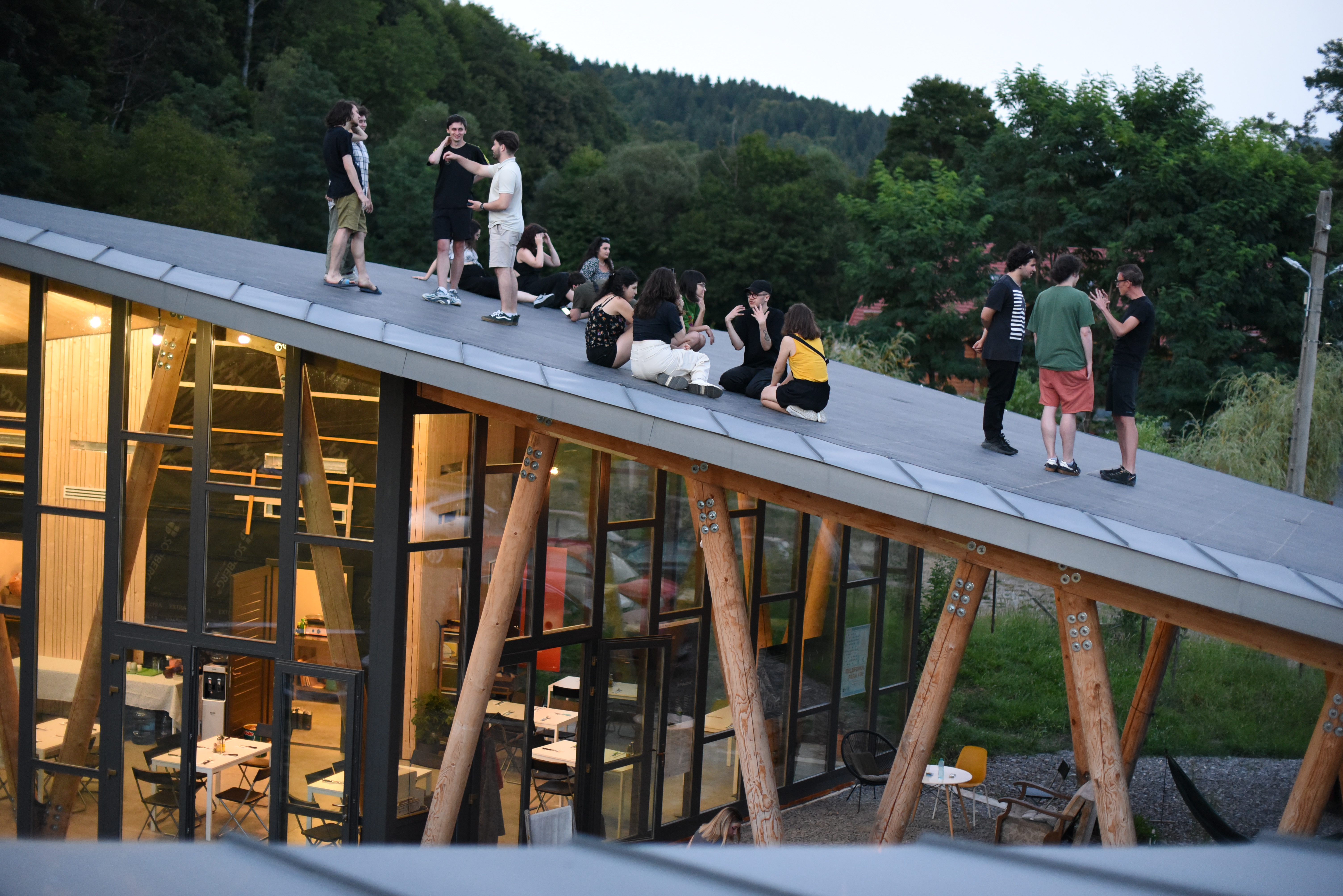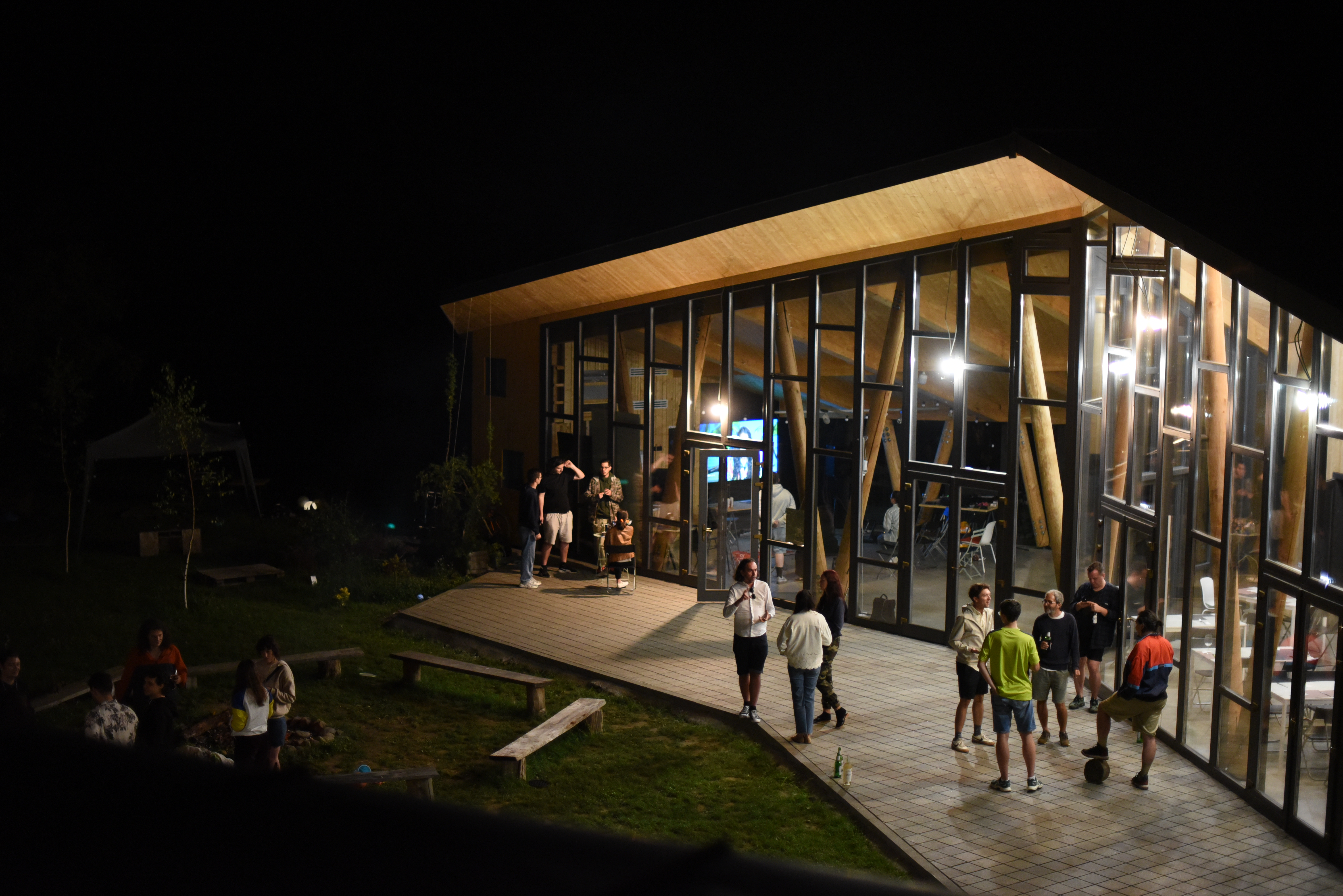 As soon as the foundation of the new building was laid, the programs began, even though construction was still far from complete. The first to use the camp was NECC (Nature, Education, Community, Center), a group of biologists who develop afterschool programs, for a biodiversity education program for young people. Shortly after, a two-day pedagogical workshop hosted three educational platforms: Space of Opportunity, Salvare ca… grup, and Talentum Elementary School. In 2022, young activists organized Utopias of Solidarity, and in the same year, sociologists and critical thinkers launched the Ecologies of Emancipation Summer School. The following year, quantum physicists from Bucharest developed The Telephone Without Wire (2023), followed by Green Line (2024). Artists and anthropologists from Budapest hosted the Summer School Zero Point (2023).