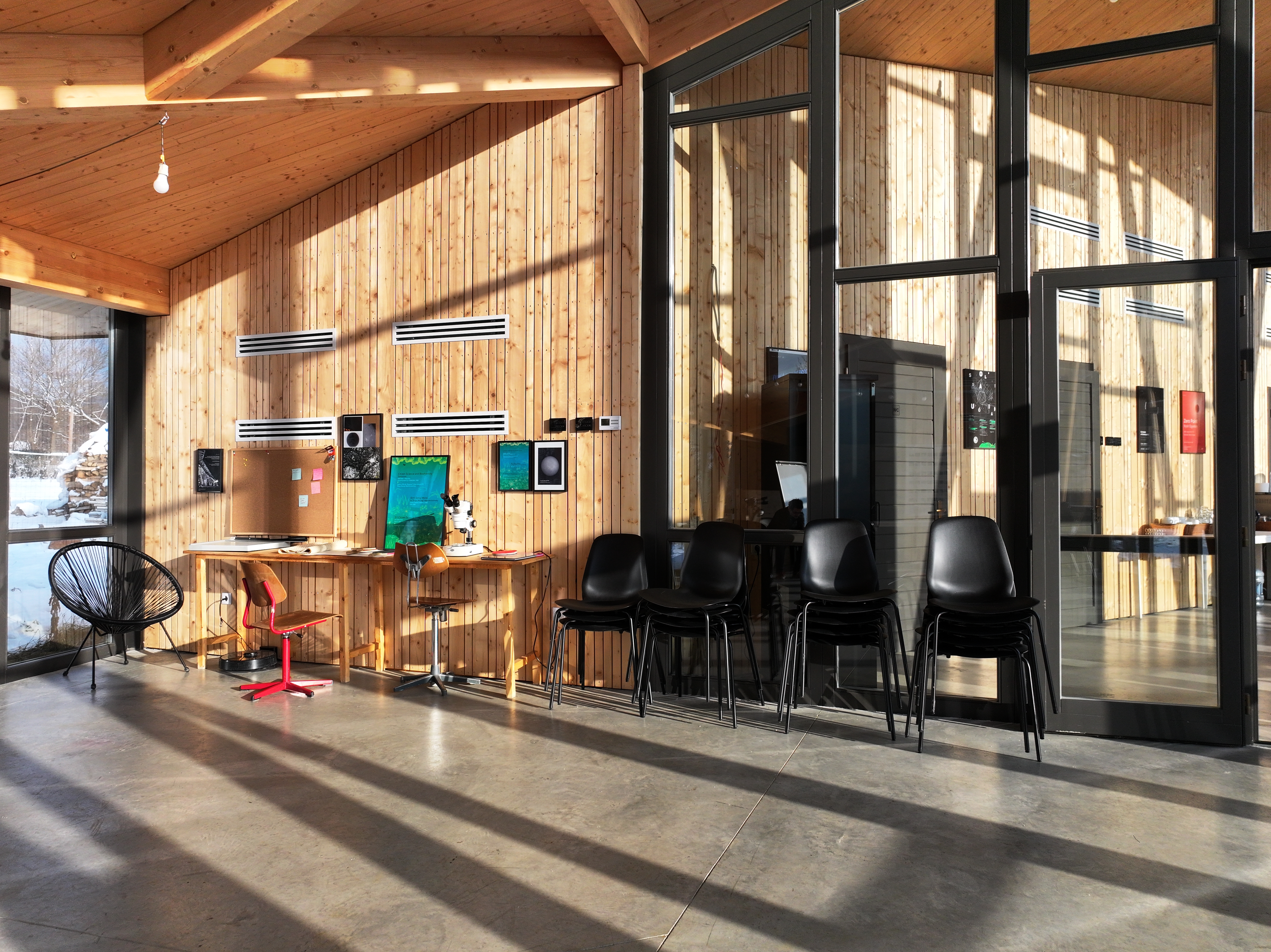 The architecture follows sustainable building principles. The wooden structures use locally sourced timber, reducing environmental impact. The design incorporates passive solar heating and natural ventilation, making the buildings energy-efficient and comfortable year-round. The multi-functional spaces can adapt to different needs, hosting workshops, discussions, and creative projects.