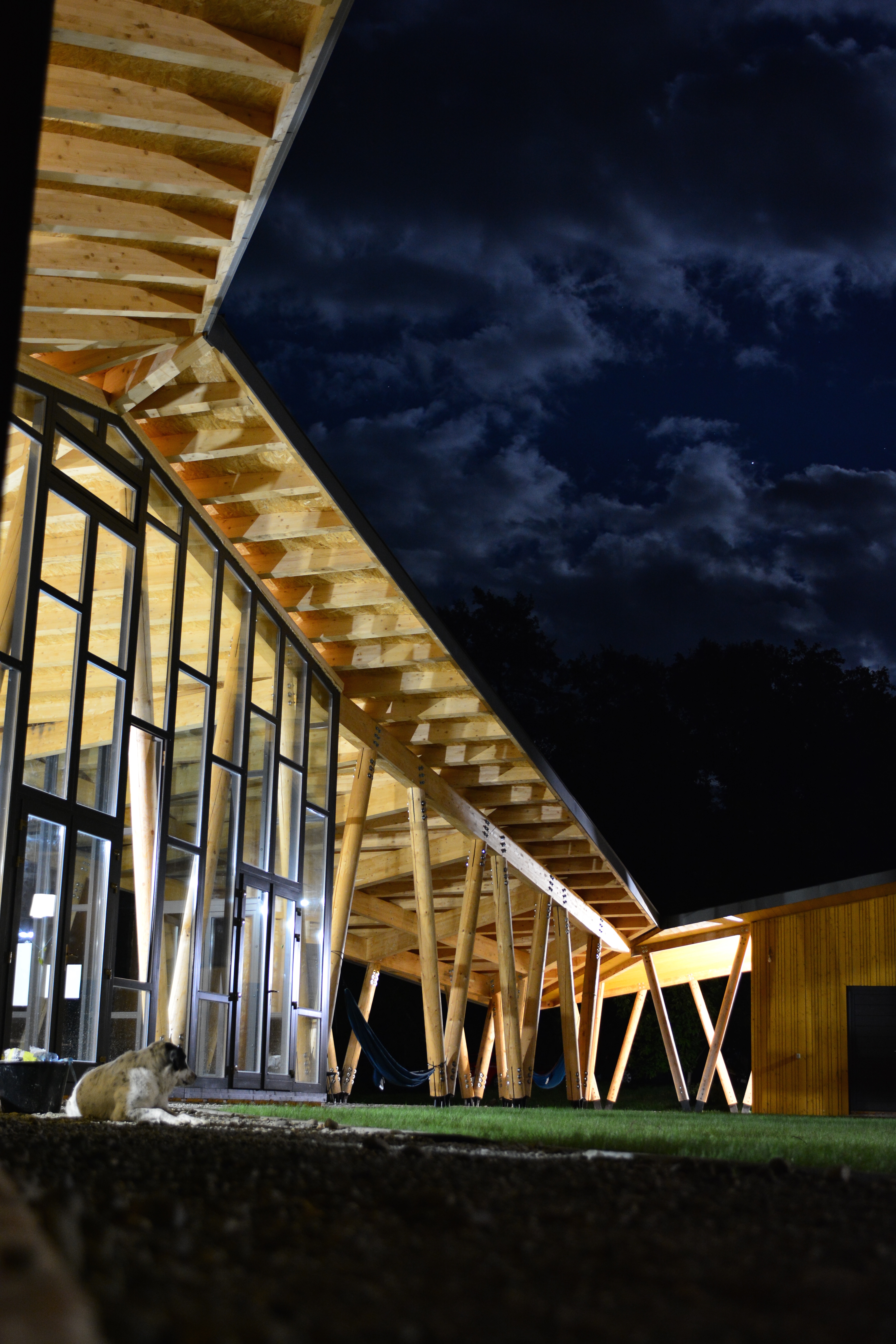 Architect Alex Whitton, who designed the camp, describes the lightweight timber building as both a reflection of its rural surroundings and an extension of them. Blipsz Architecture developed Whitton's architectural concept, overseeing the process to execution and preparing it for permitting. The structure provides accommodation and learning spaces while also serving as a practical tool for teaching sustainable building ecologies. Its design emphasizes harmony with nature, energy efficiency, and flexible communal spaces.