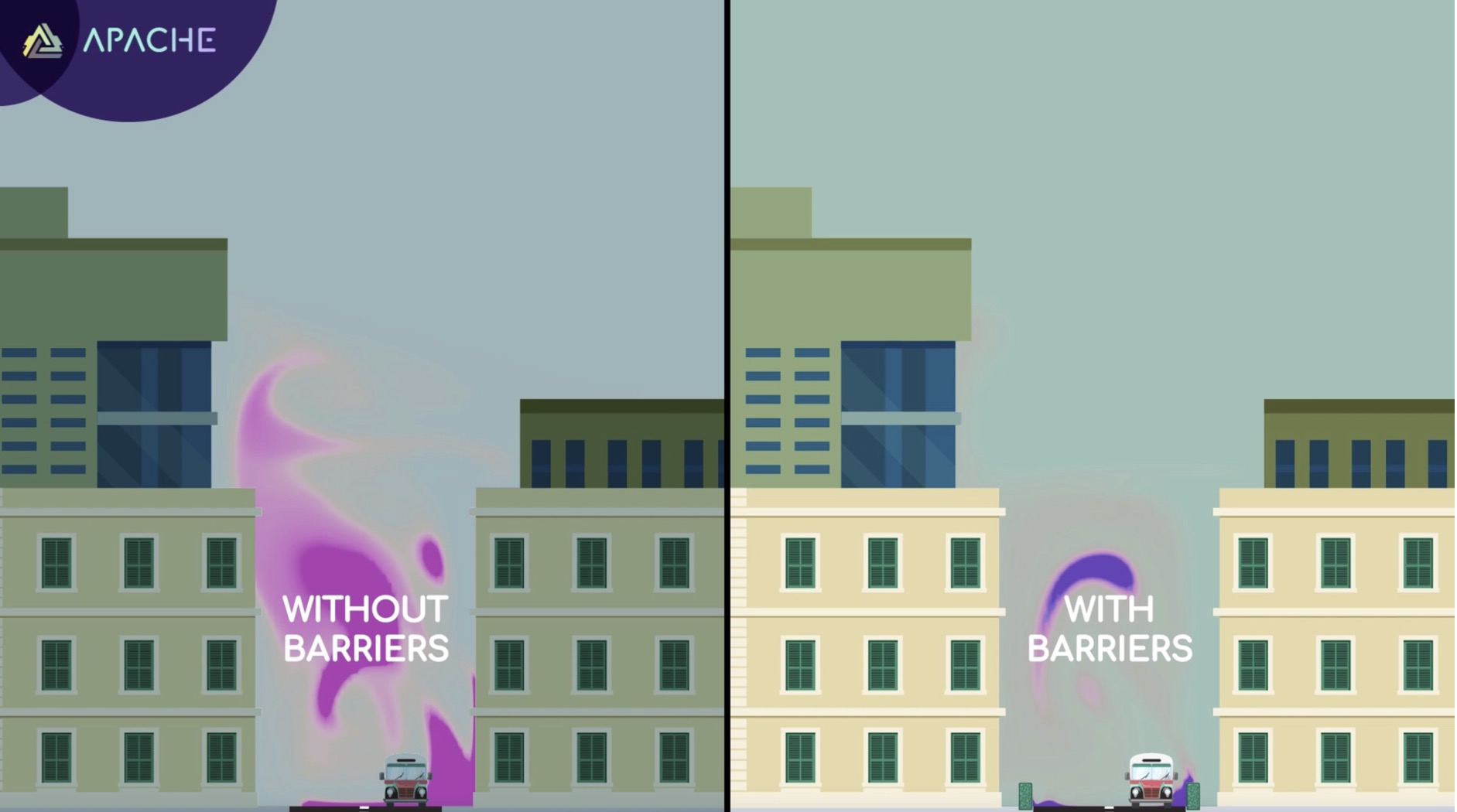 Pedestrians, are exposed to high concentrations of pollutants in traffic zones since pollutants are released in the region of about 50cm above ground. This is within the breathing zone of young children and pets. This exposure to harmful pollutants poses significant health risks, including respiratory issues and long-term health effects. This critical issue inspired the applicant to seek sustainable solutions that do not require active filtration or the use of fans or other energy-consuming equipment. The goal was to find a Nature Based Solution (NBS) to protect pedestrians from pollution. The focus of APACHE is to reduce concentrations of gaseous pollutants such as VOCs and particulate matter. Street furniture such as planters and greening elements provide aesthetic/architectural features to the urban environment. However, the applicant hypothesized that, in addition to this NEB value, careful design and placement of planters could also provide a barrier against pollution that is released from vehicles. The literature supports the positive effects of vegetation in modifying airflow and the transport of pollutants in urban areas, yet no studies or designs have been established to show how barriers can be designed to shield pedestrians effectively. APACHE utilizes state-of-the-art experimental and simulation tools to optimize the air quality barrier. The project leverages advanced Computational Fluid Dynamics (CFD) simulations and wind tunnel testing to validate the effectiveness of this innovative barrier design. The modular, vegetative barrier is shown to provide improvements in air quality in pedestrian areas by 55%. Supporting the project are citizens in an effort to promote inclusiveness. A number of workshops were organised so that citizen feedback informs design decisions in a co-design process. APACHE focuses on regions and cities affected by local pollution problems and being cheap and modular, can be included areas with socio-economic challenges.