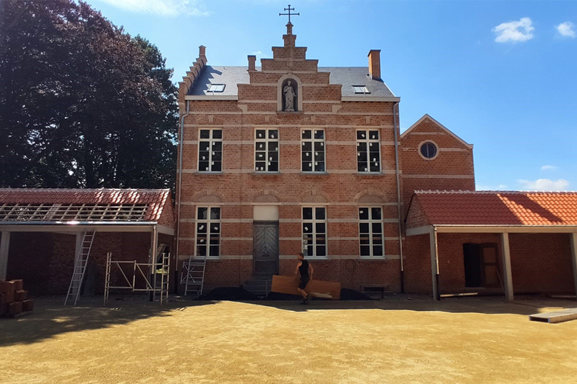 Following the initiative of only nine villagers a broad collective was forged, in which they involved local entrepreneurs, the regional social housing authorities, community welfare services, the monuments & site administration and an interdisciplinary design team of heritage architects (aNNo), urban planners (A2D ) and architects (D2A) . The collective of villagers (organised in the non-profit organization Convent Meer) and the social housing authorities (Bouwmaatschappij De Noorderkempen) managed to acquire the site in 2005.