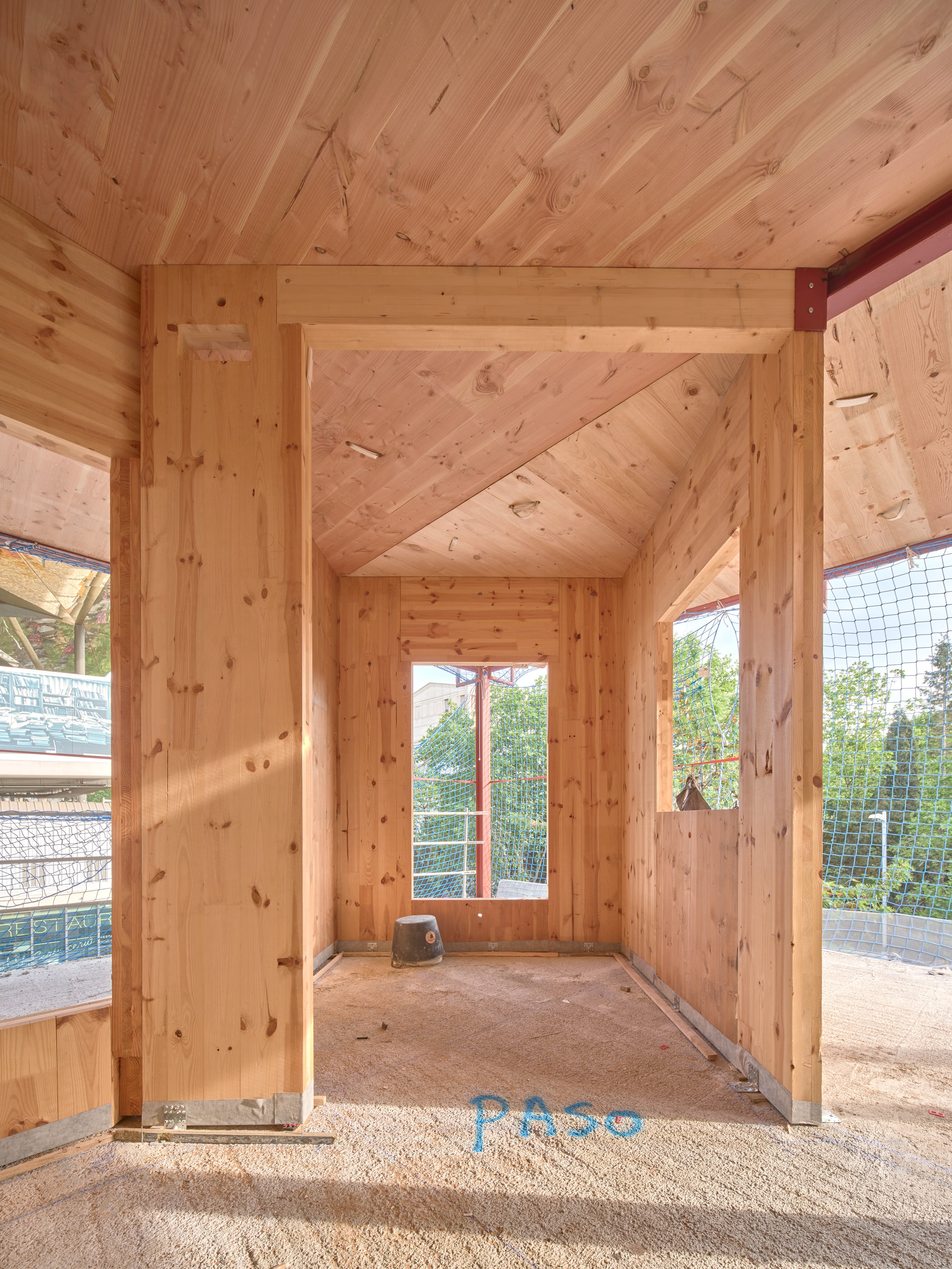 A key aspect of the project is the prefabrication of its wooden structure. This method optimizes construction processes, significantly reducing both resource consumption and construction waste. By using prefabricated wooden elements, the project minimizes on-site construction time and labor, creating a more efficient and environmentally friendly building process. This approach can be easily replicated in other urban settings, especially in cities looking to improve their sustainability practices in construction.