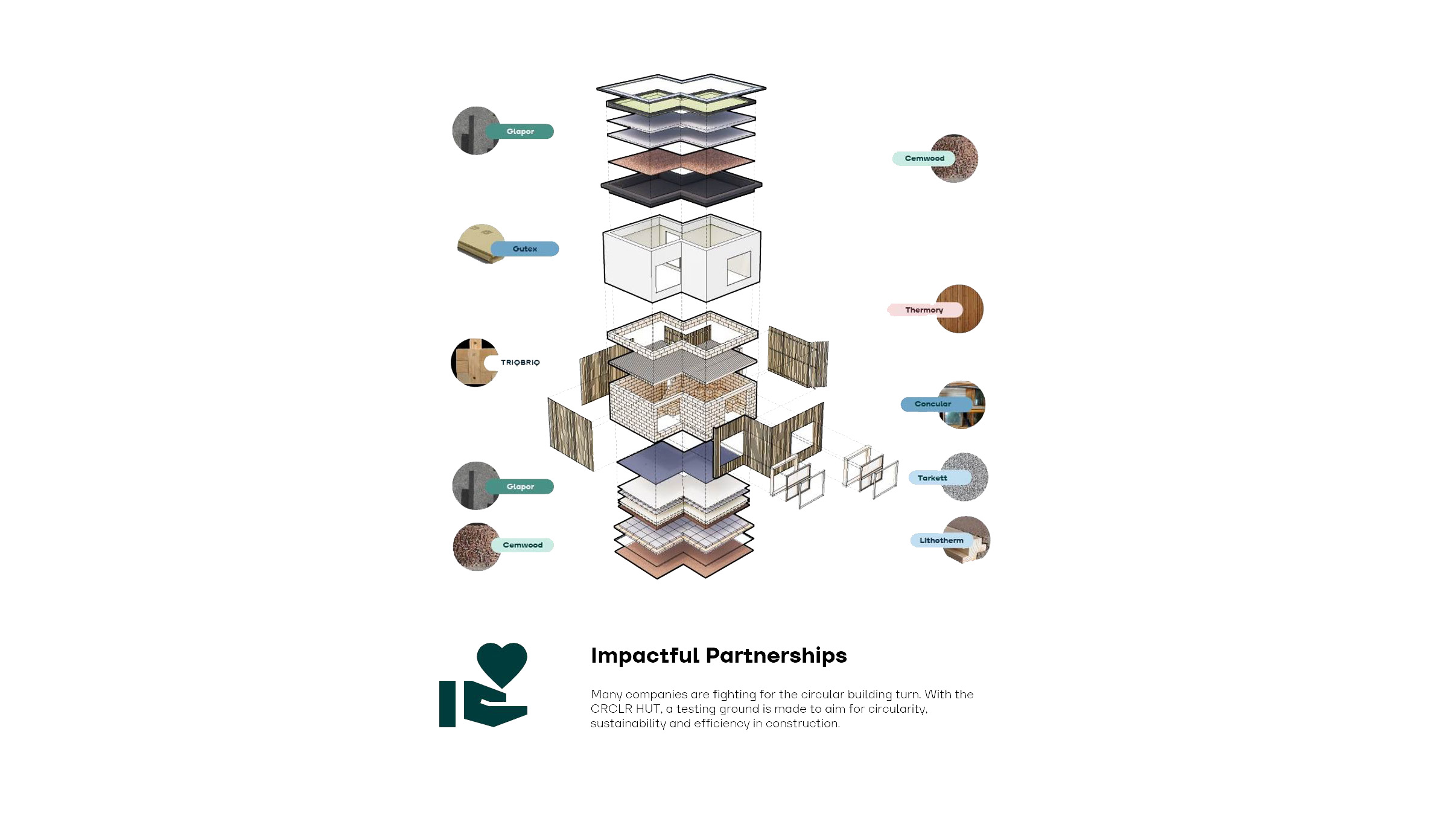 Through collaboration with a diverse range of partners and stakeholders, the CRCLR HUT exemplifies a new societal model where innovation, circularity, and inclusivity drive progress in construction. It shows how collective effort and shared knowledge can create affordable, accessible, and adaptable buildings that have a lasting positive impact on both people and the environment.